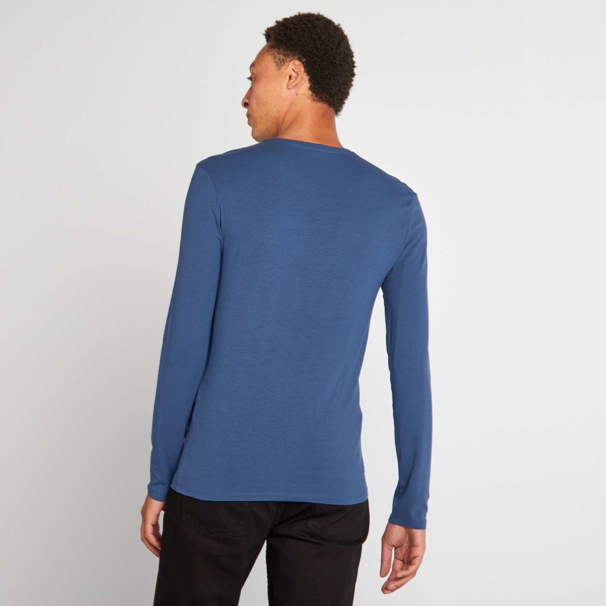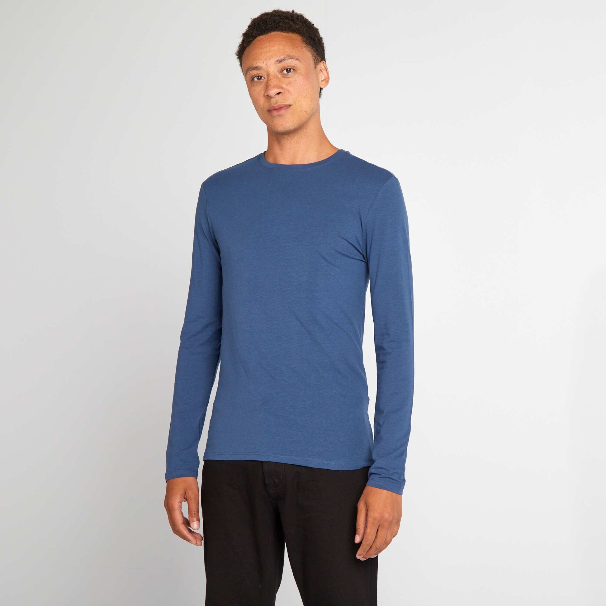 قميص عضلي بأكمام طويلة باللون الأزرق