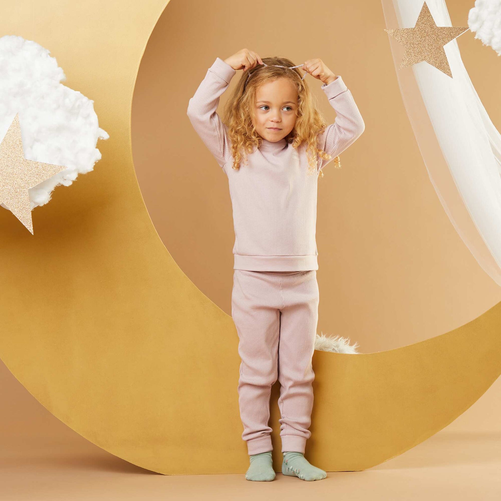 طقم بيجاما مضلع قابل للتكيف - طقم من قطعتين باللون الوردي
