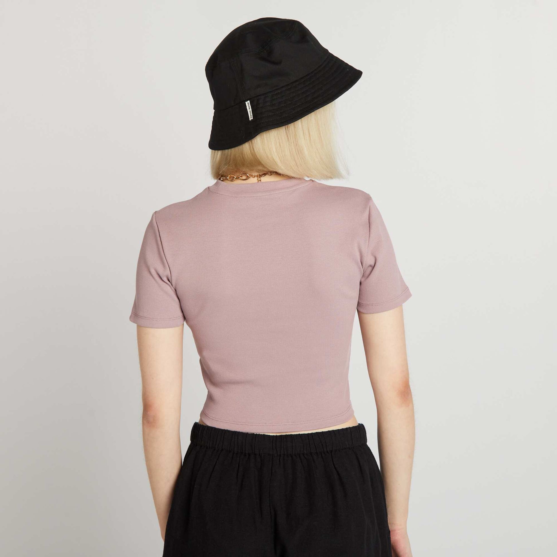 بلوزة قصيرة مضلعة بسيطة باللون الوردي من "بيفرلي هيلز"