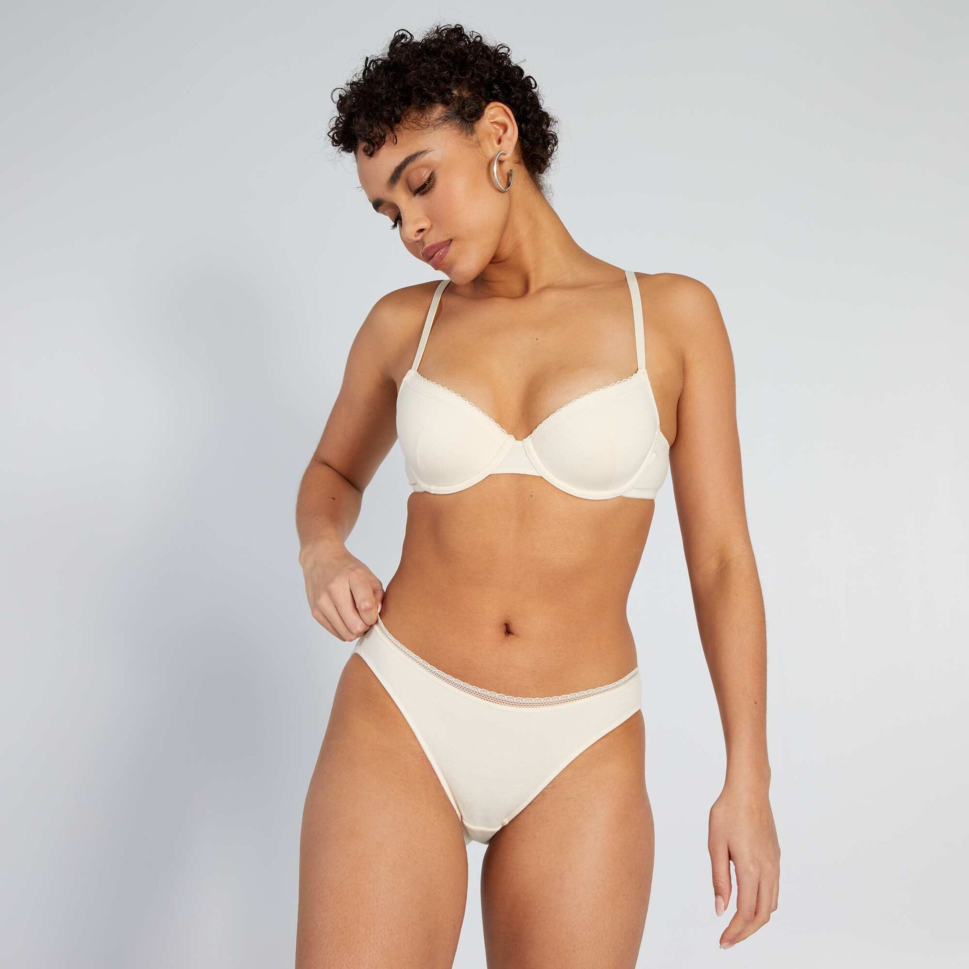 سراويل داخلية من القطن مع حواف من الدانتيل باللون البيج
