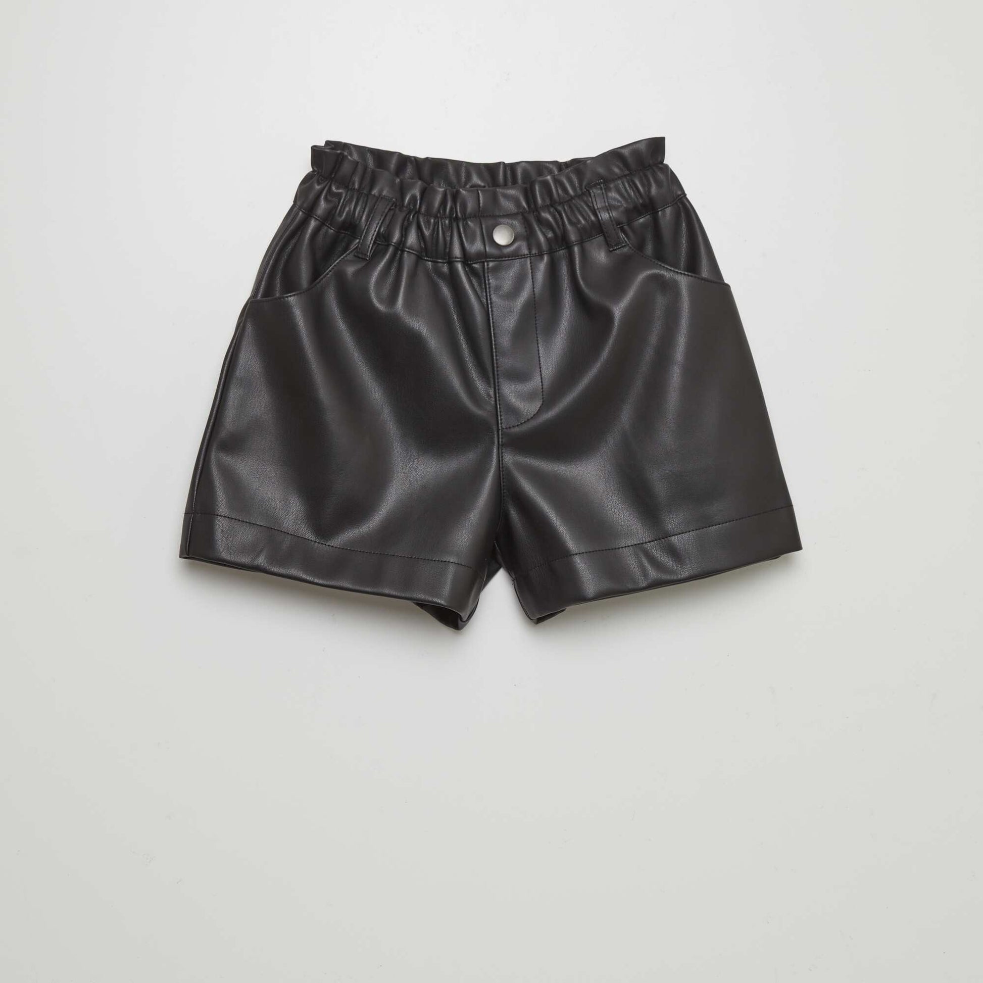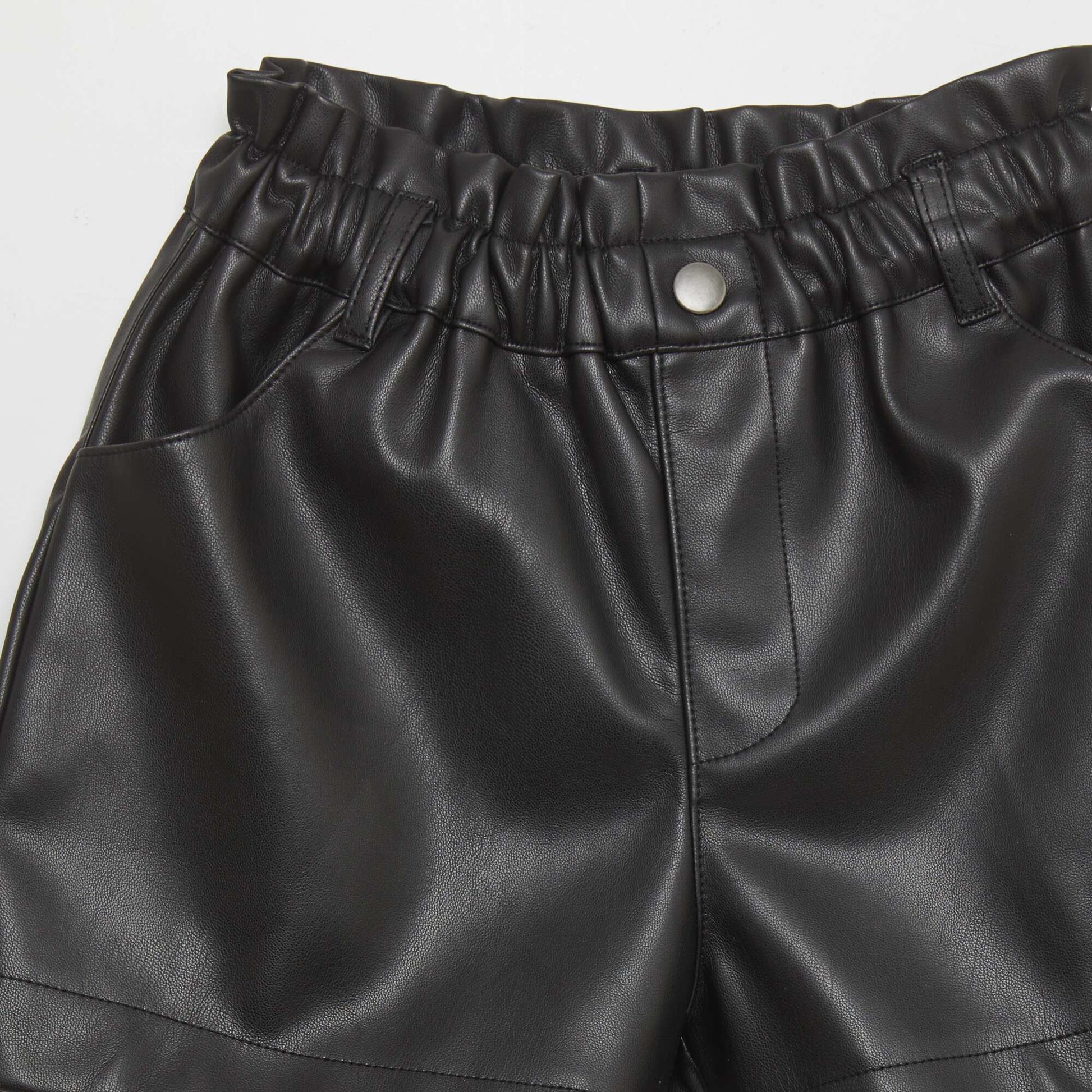 شورت ورقي من الجلد الصناعي باللون الأسود