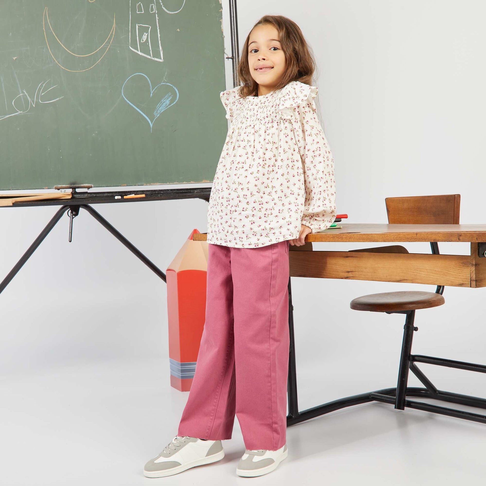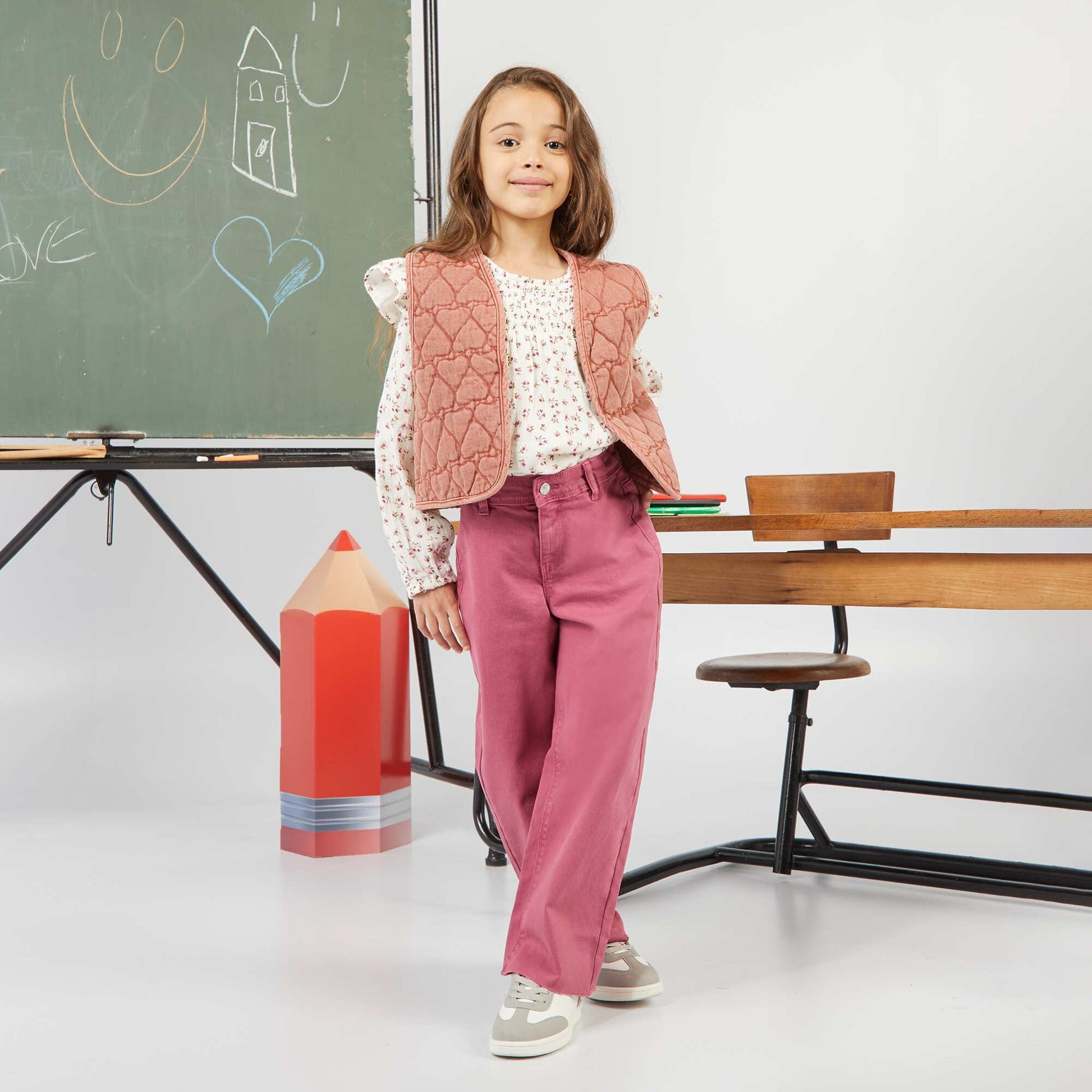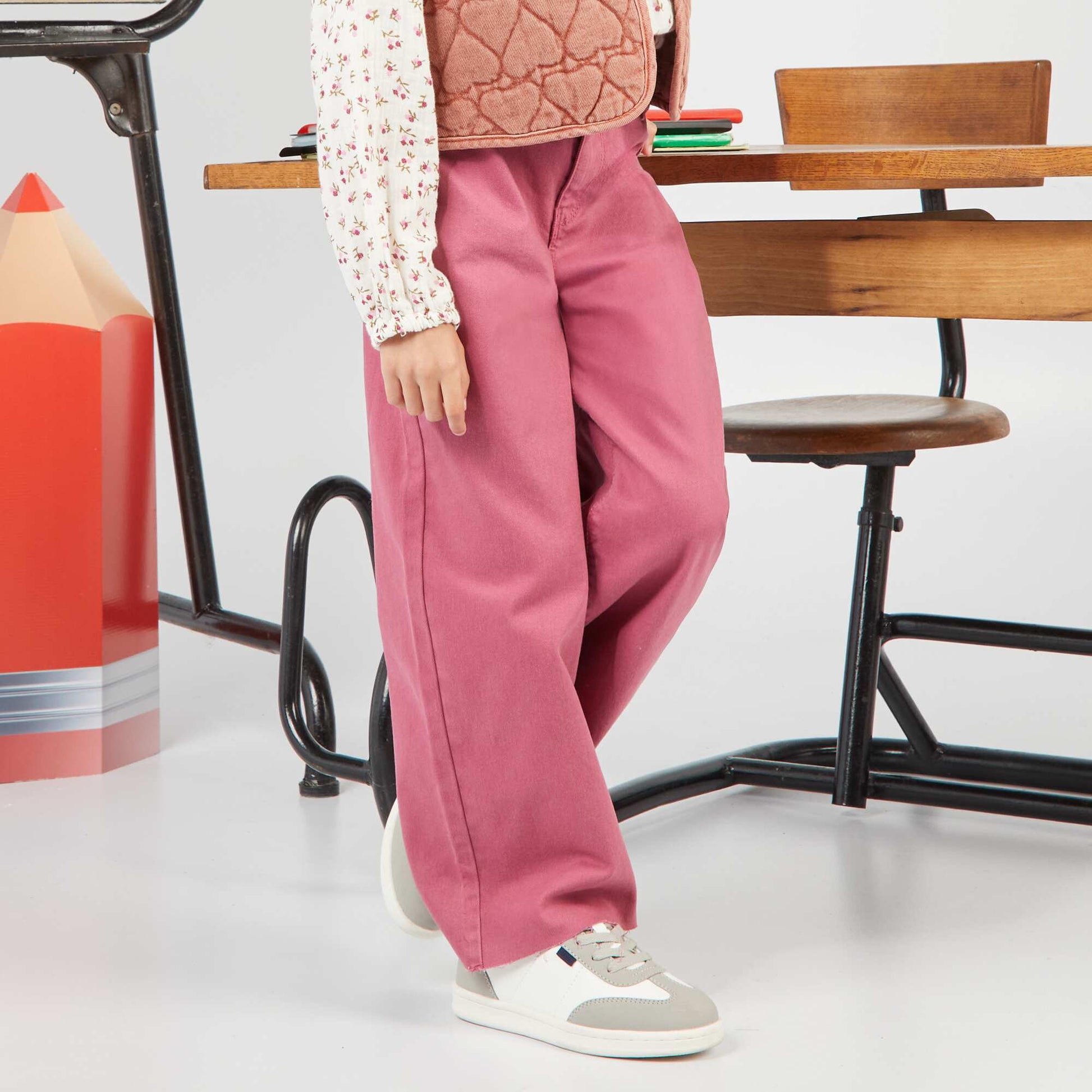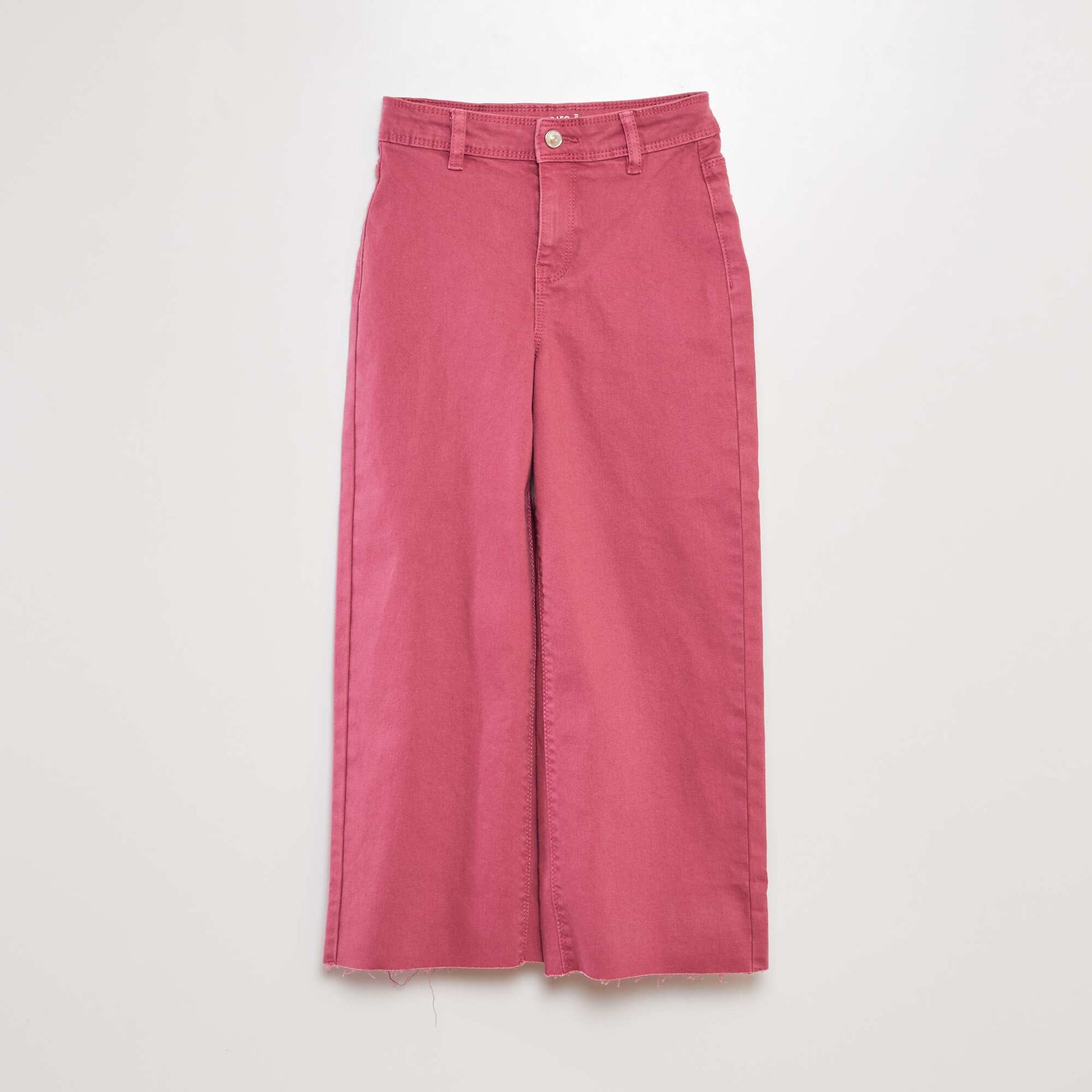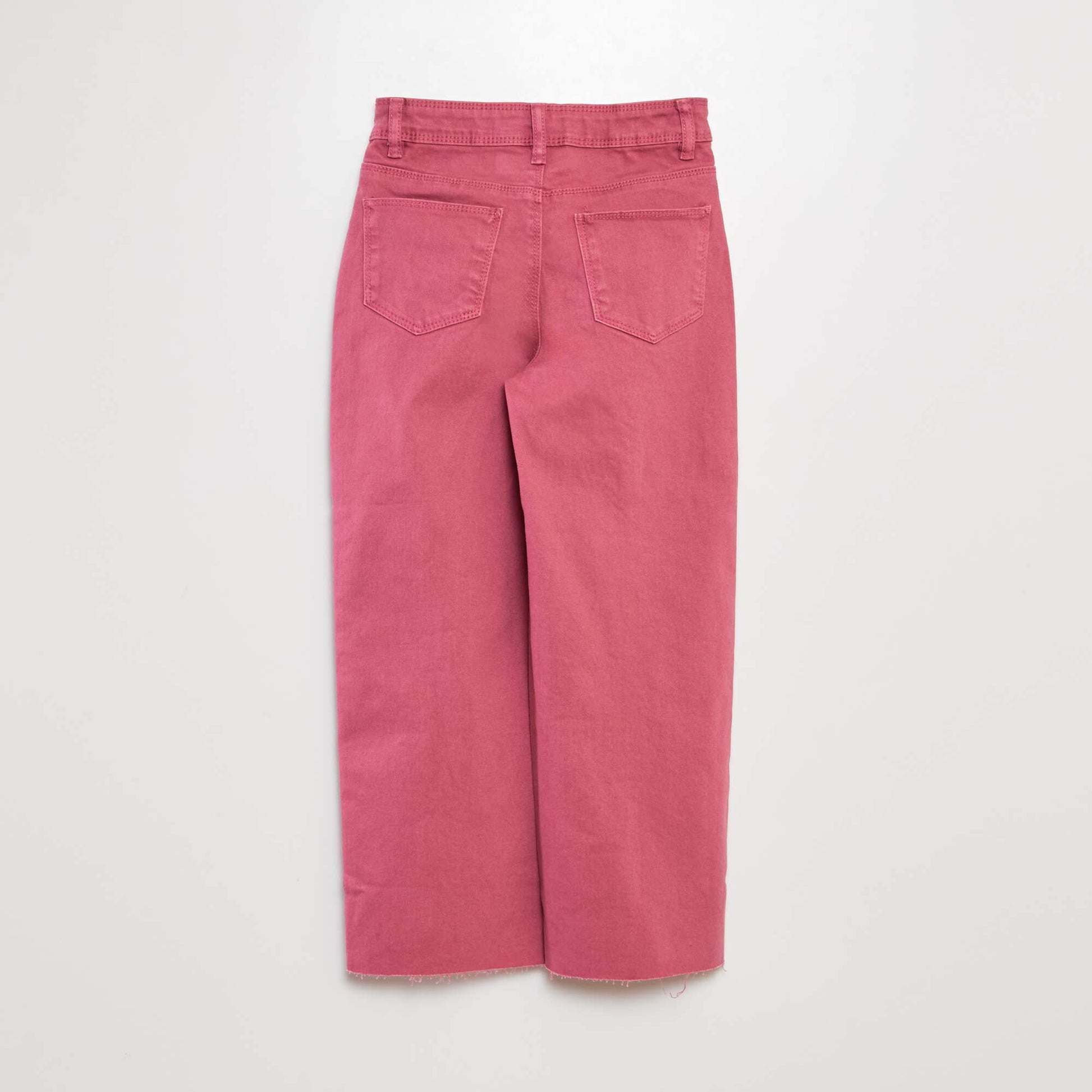 بنطال جينز واسع الساق بخصر مرتفع باللون الوردي