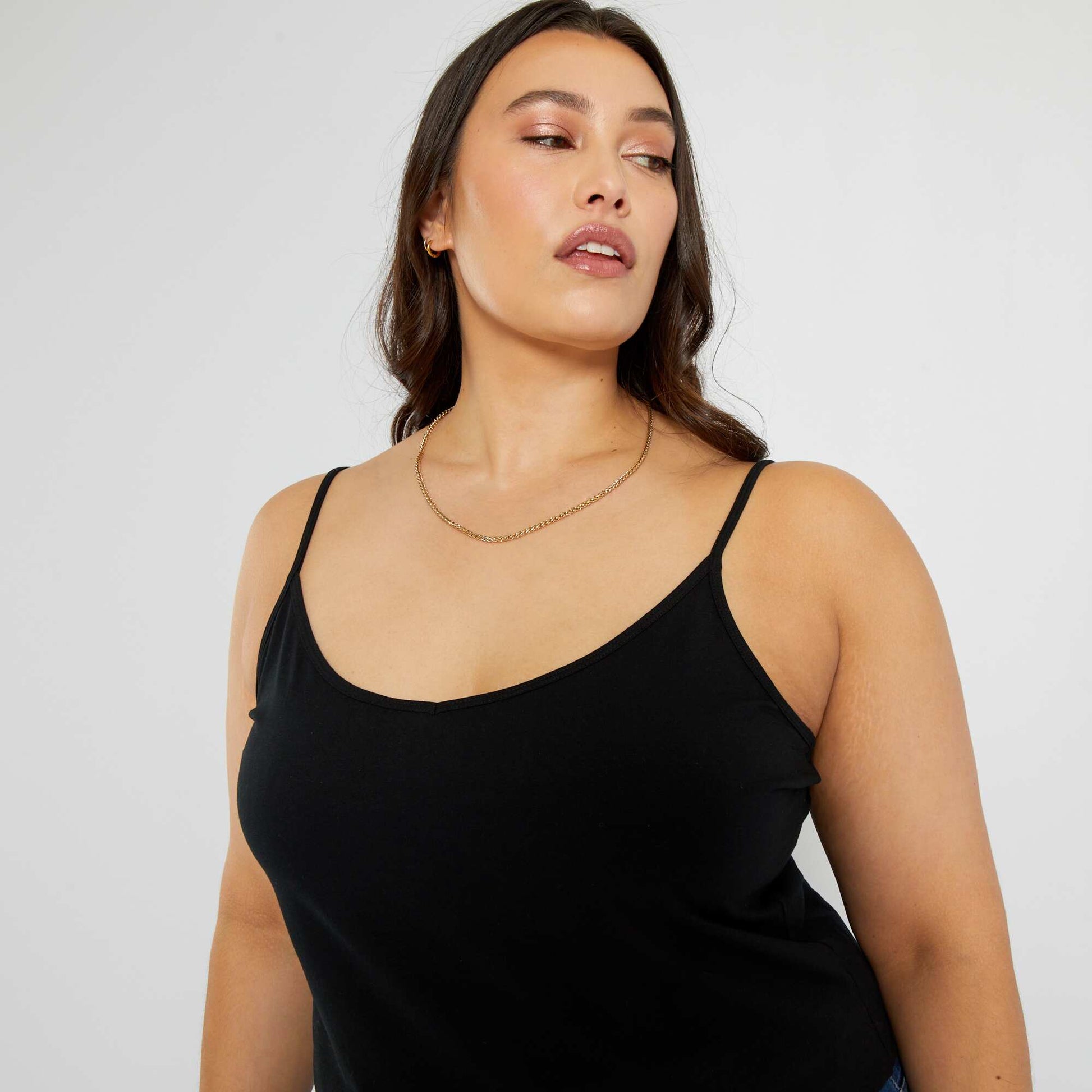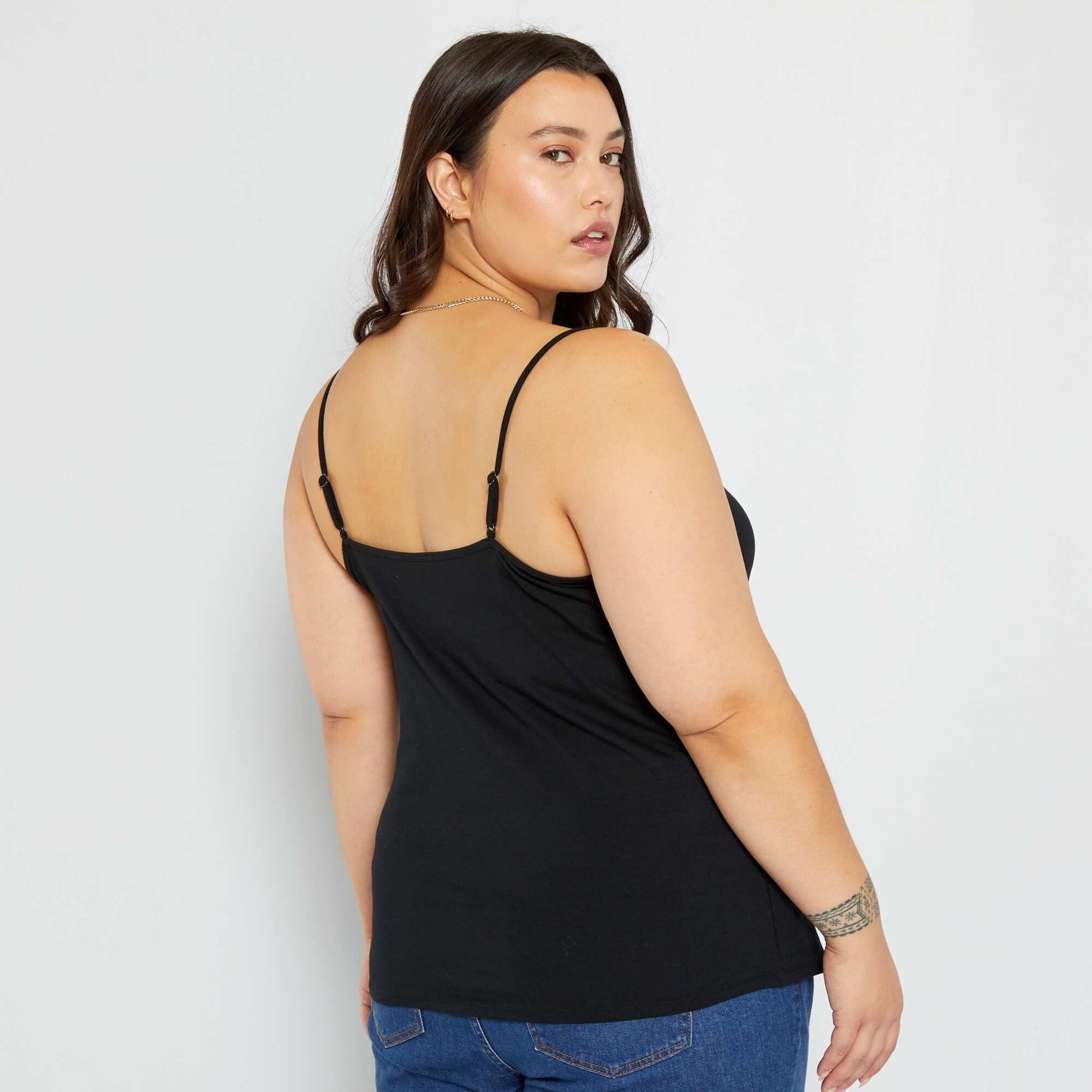 قميص جيرسي بأشرطة رفيعة باللون الأسود