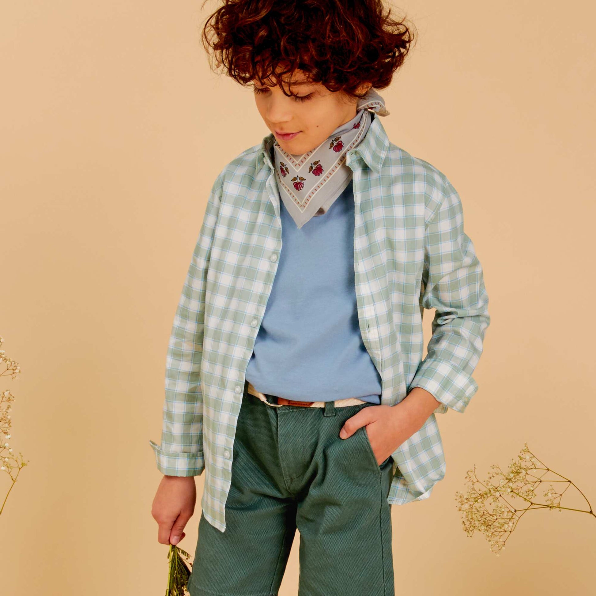 قميص بوبلين باللون الأخضر