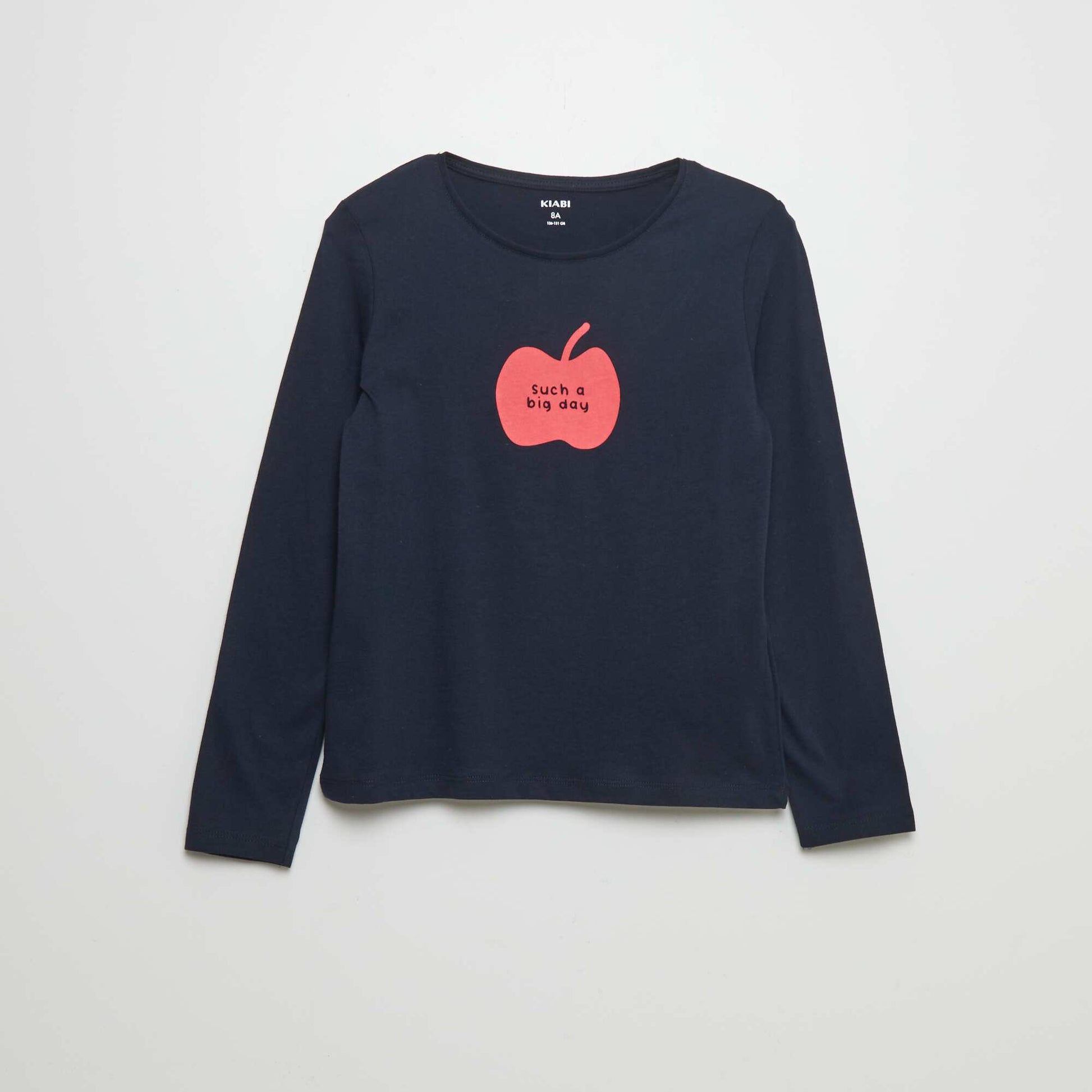 تي شيرت قطني مطبوع باللون الأزرق