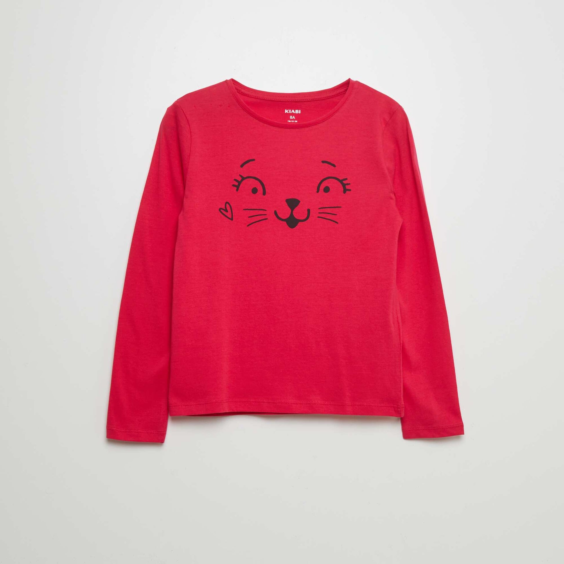 تي شيرت قطني مطبوع باللون الوردي