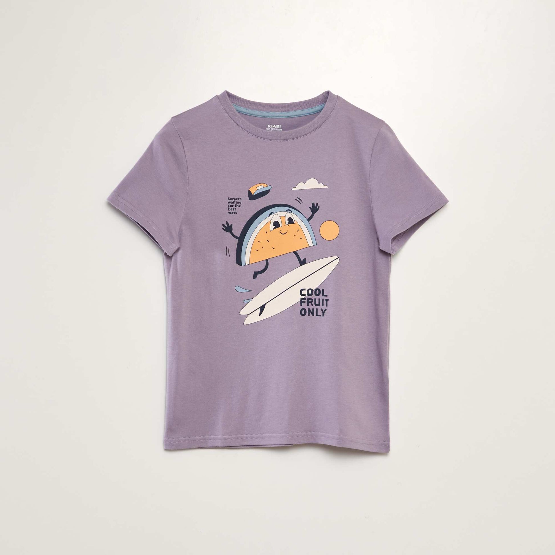 تي شيرت جيرسي محبوك مطبوع باللون الأرجواني