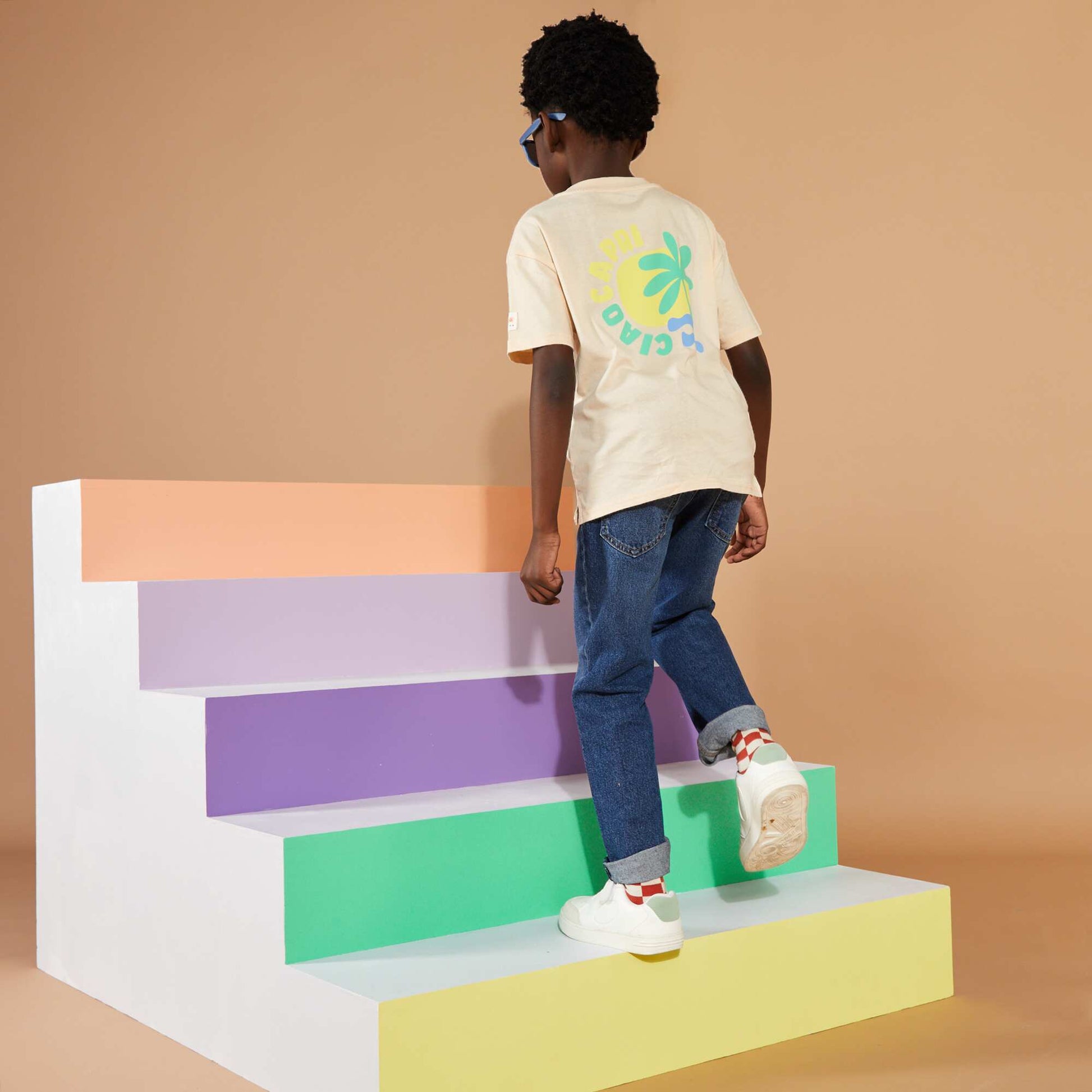 تي شيرت فضفاض مطبوع - إصدار جرافيكي - بيج