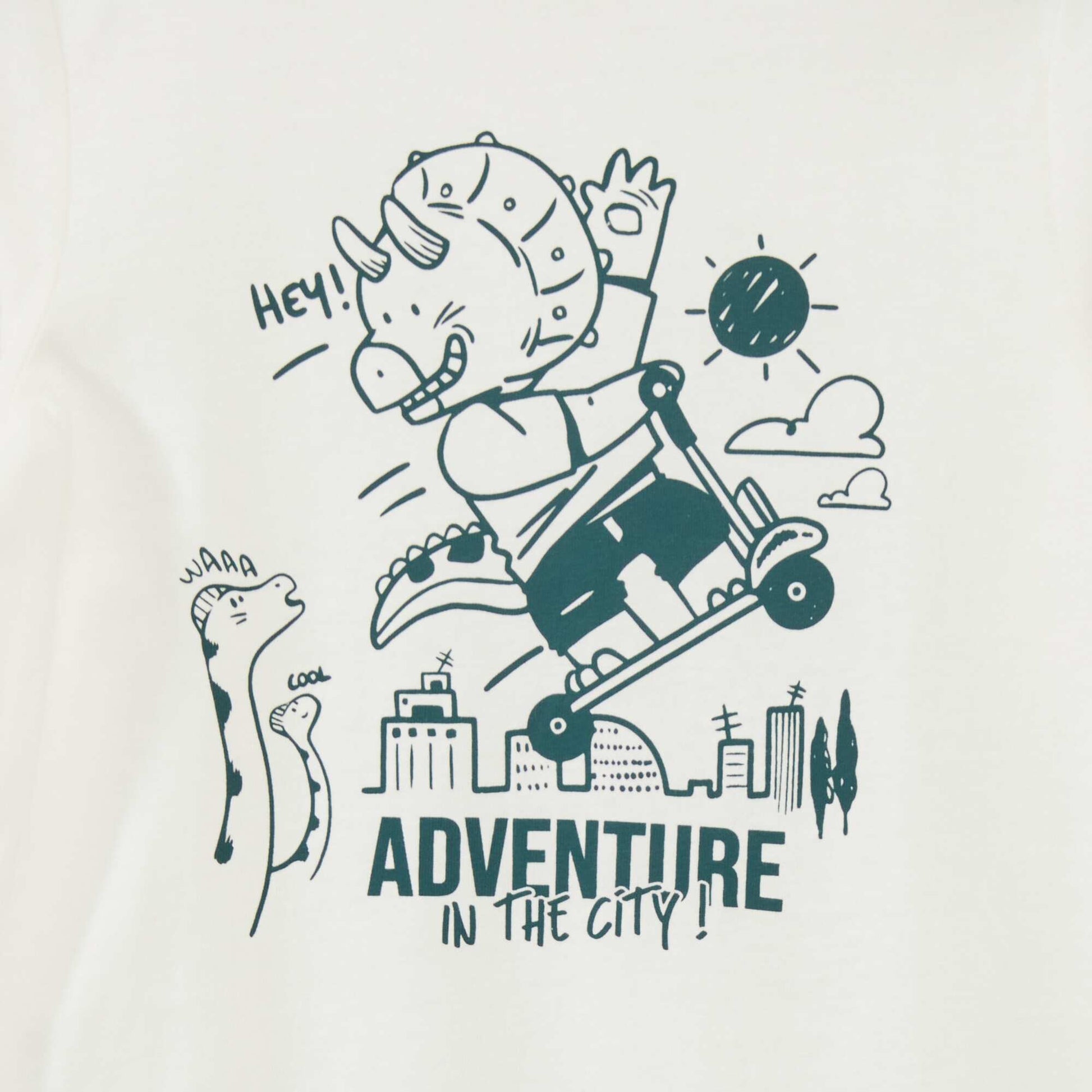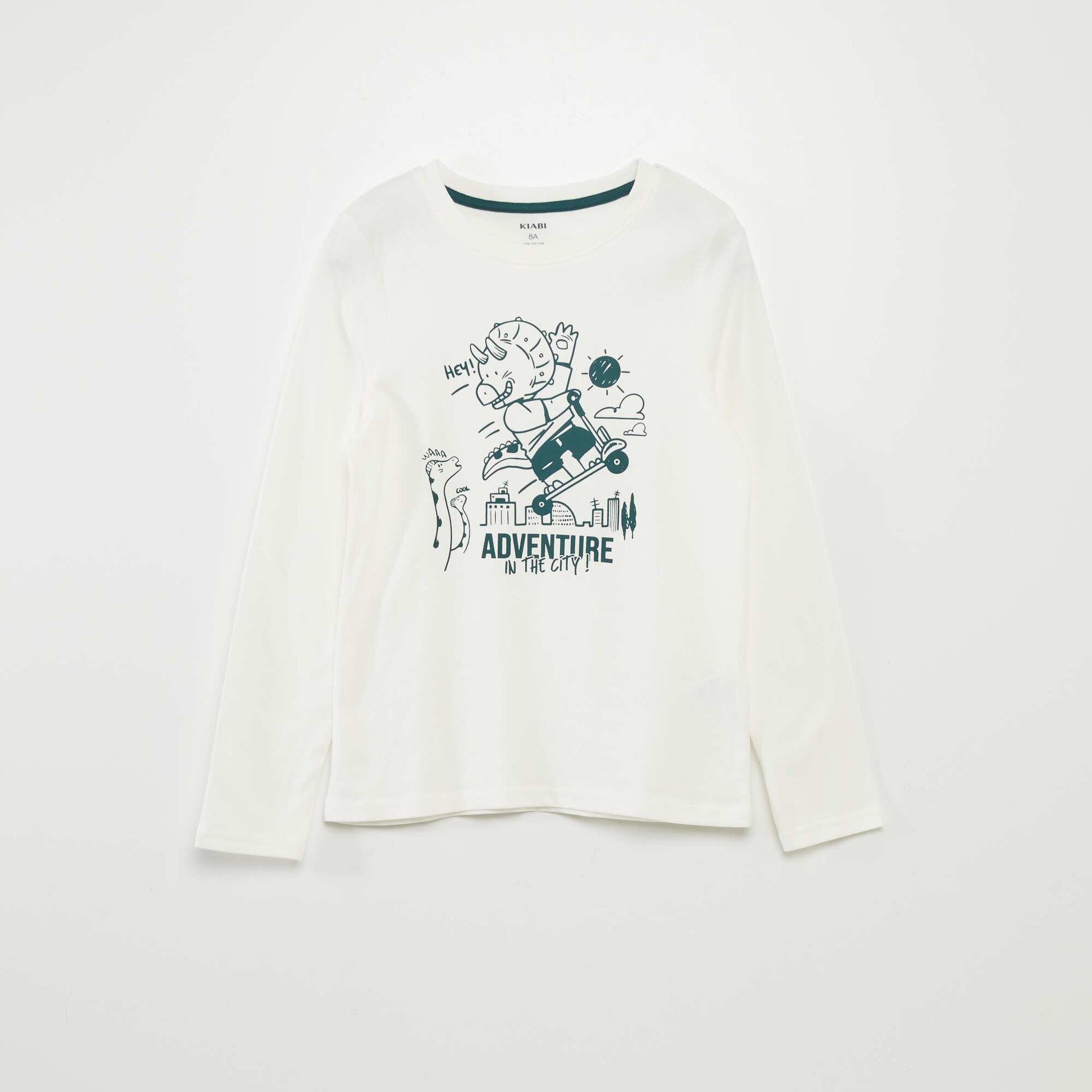 تي شيرت مطبوع برقبة دائرية باللون الأبيض