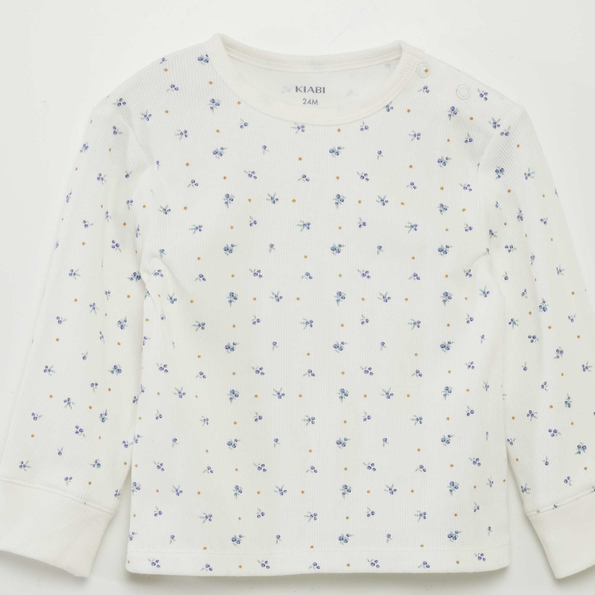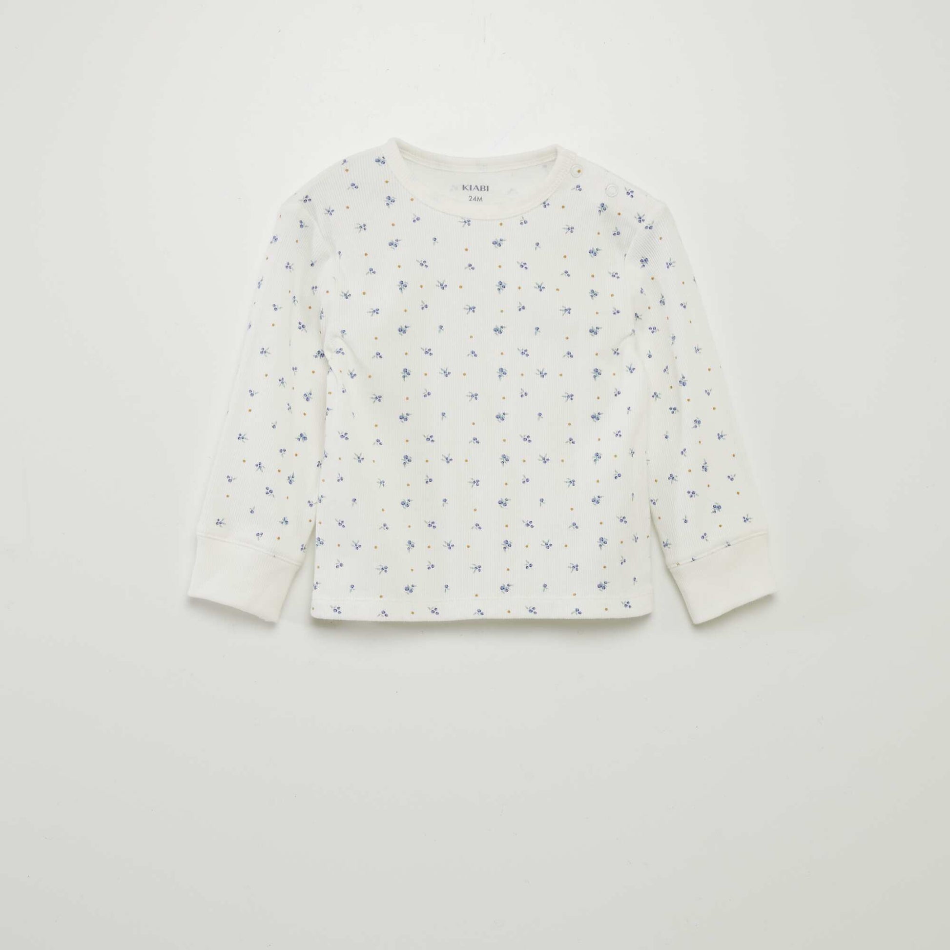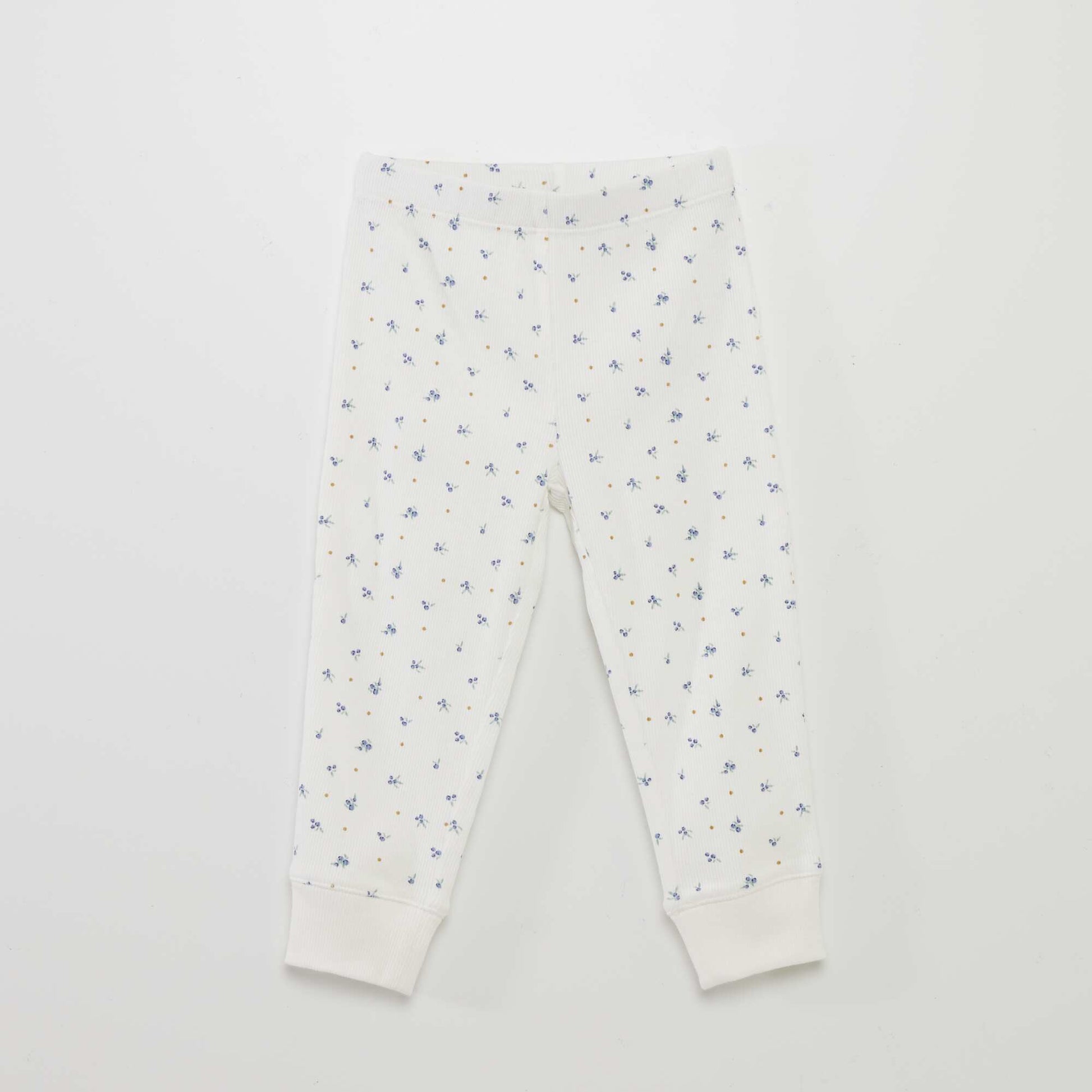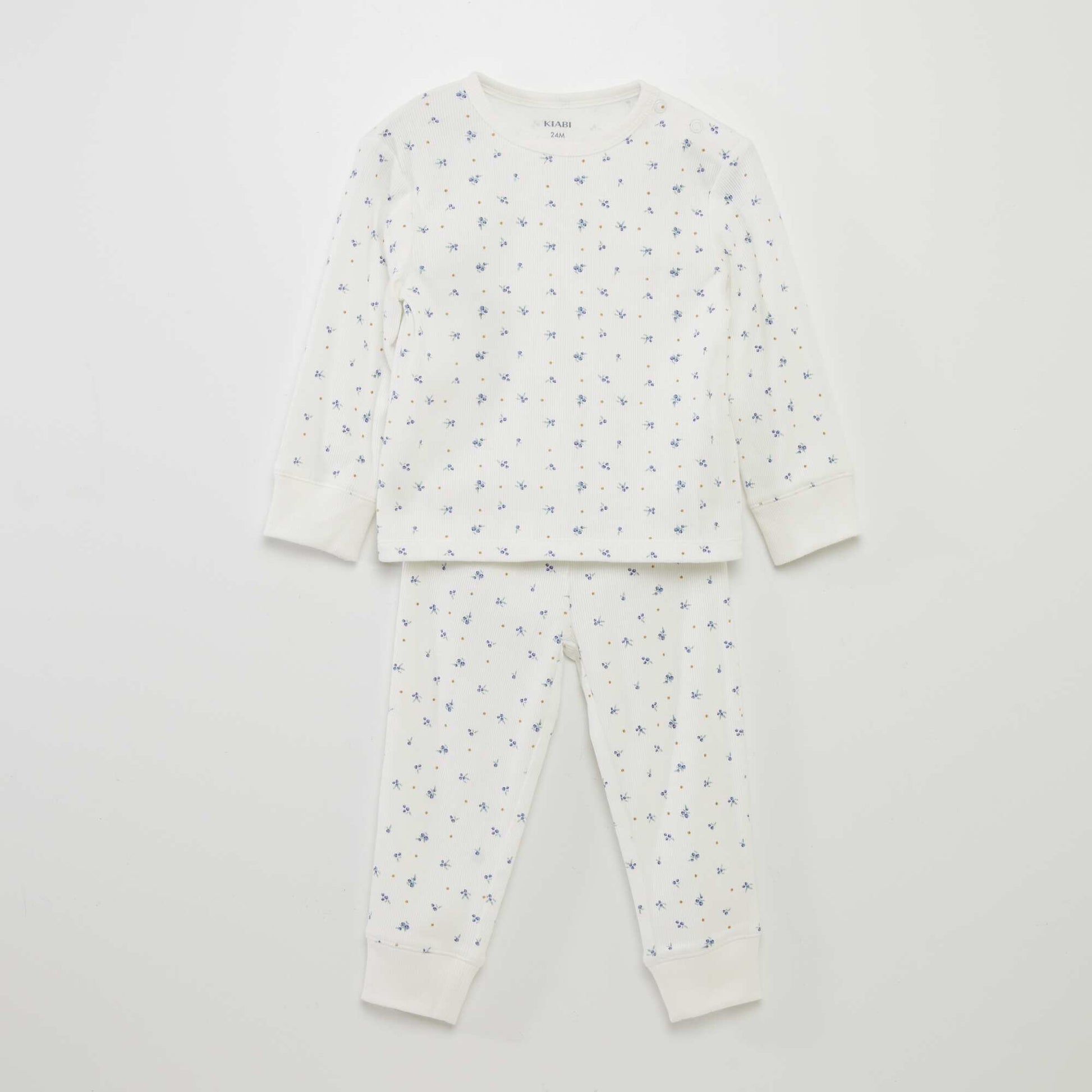 طقم بيجامة مضلع ومطبوع - قطعتين - أبيض