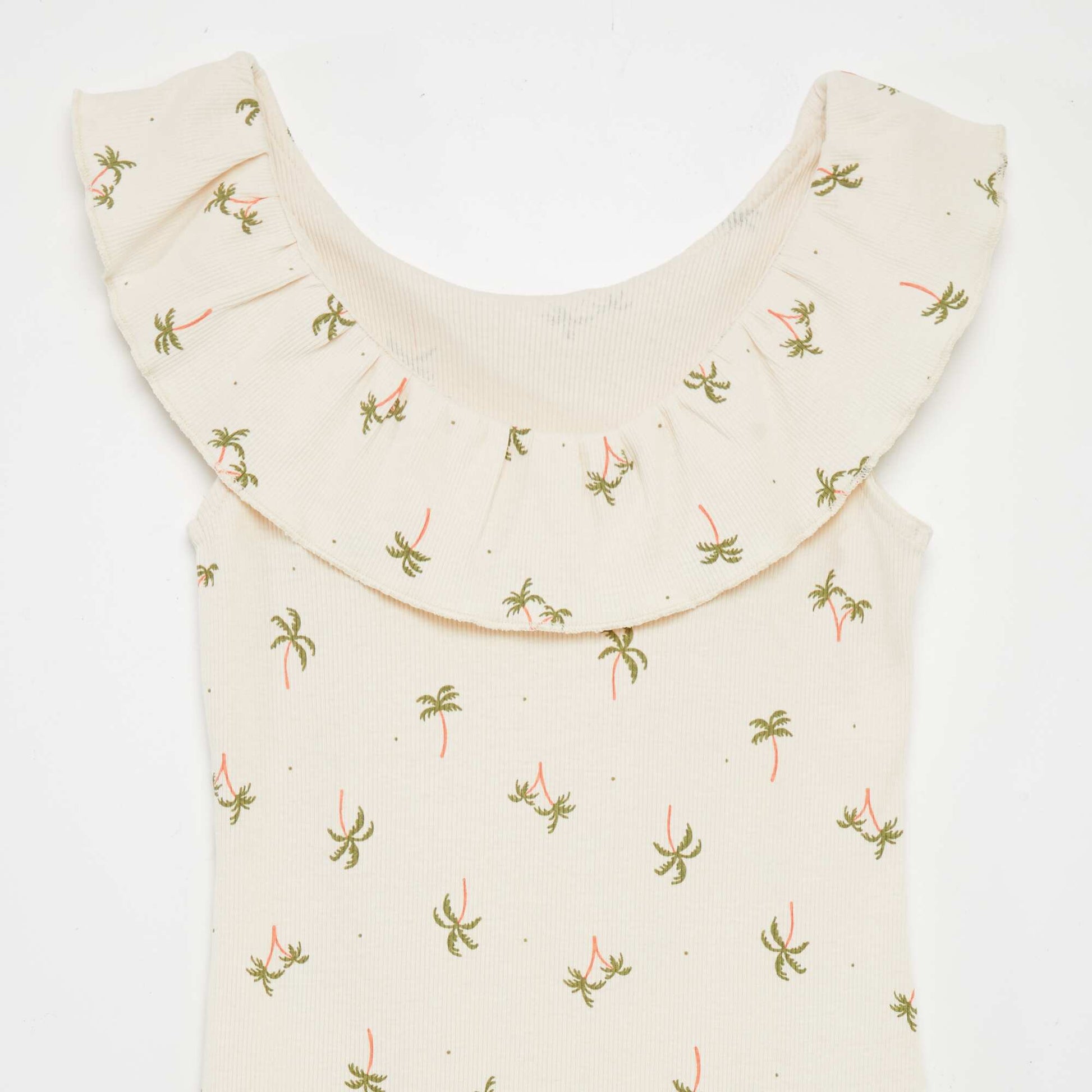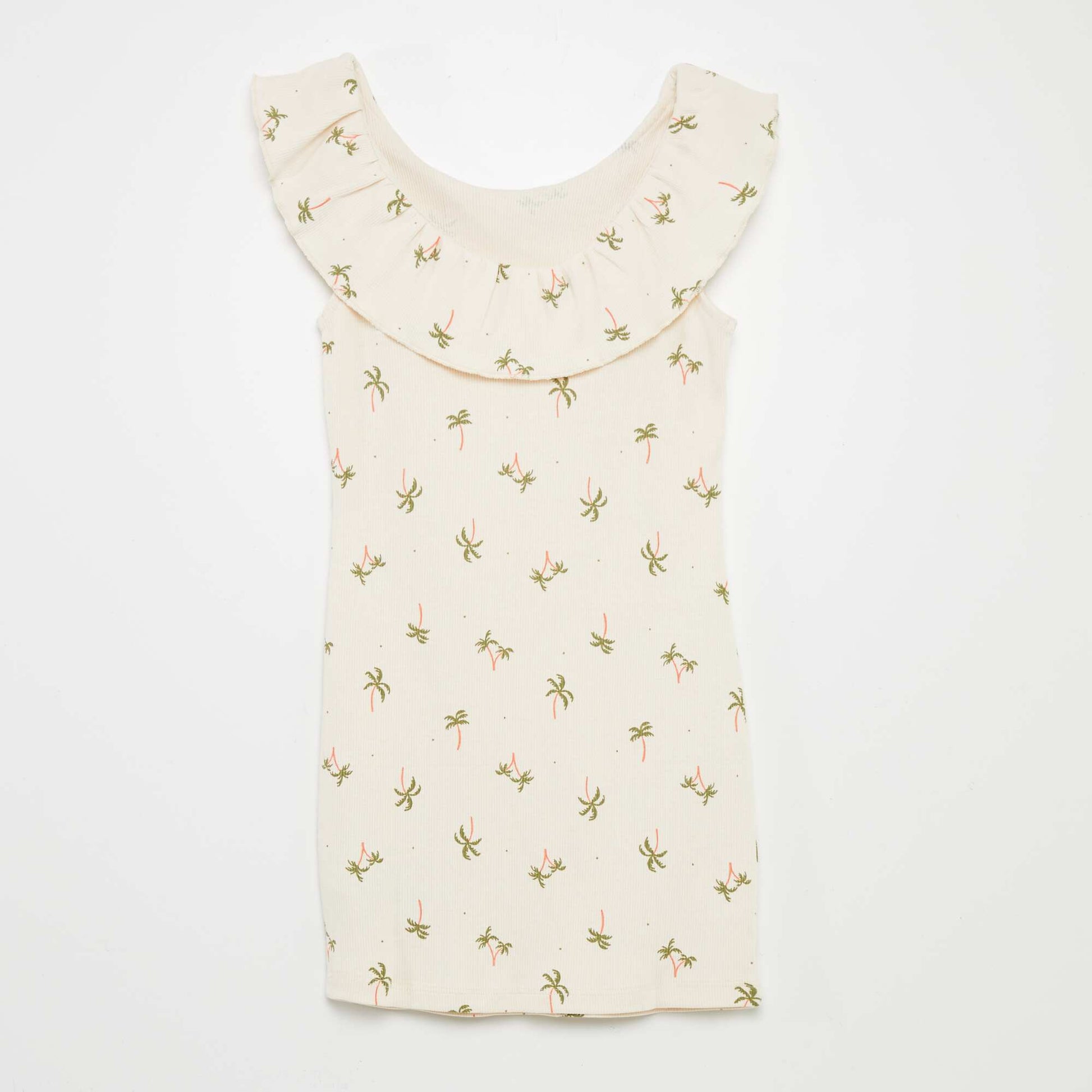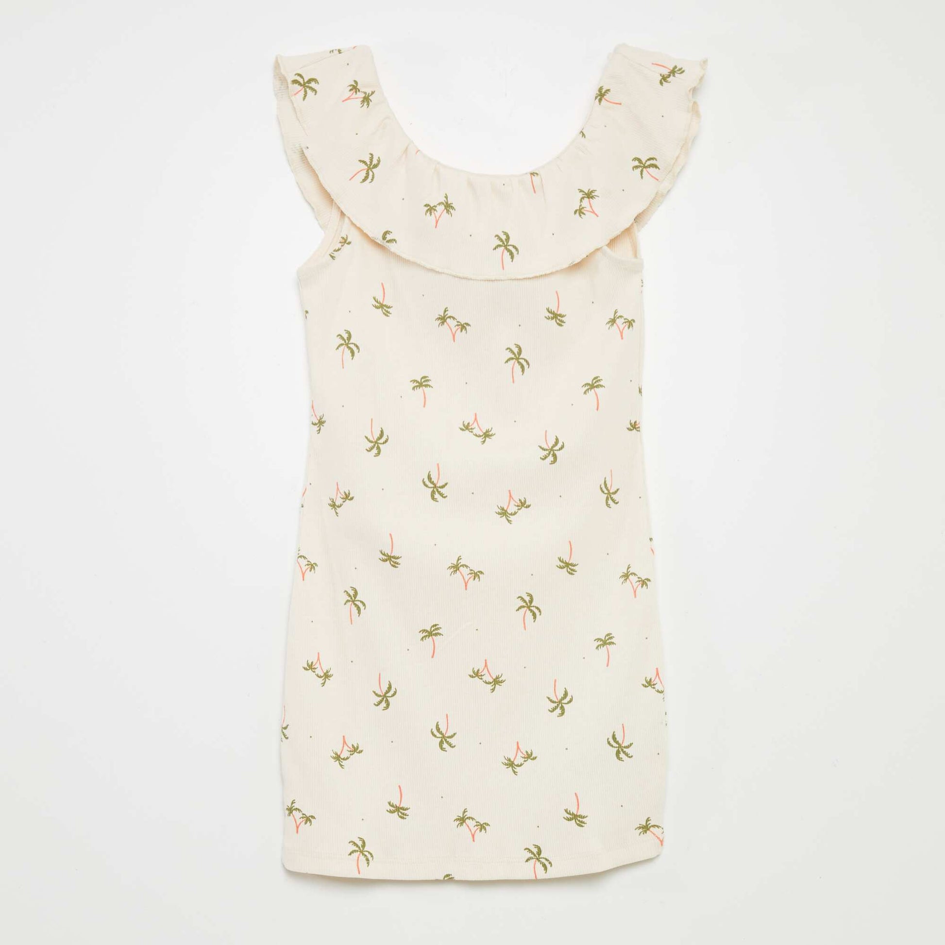 فستان محبوك مضلع بفتحة صدر باردو باللون الأبيض