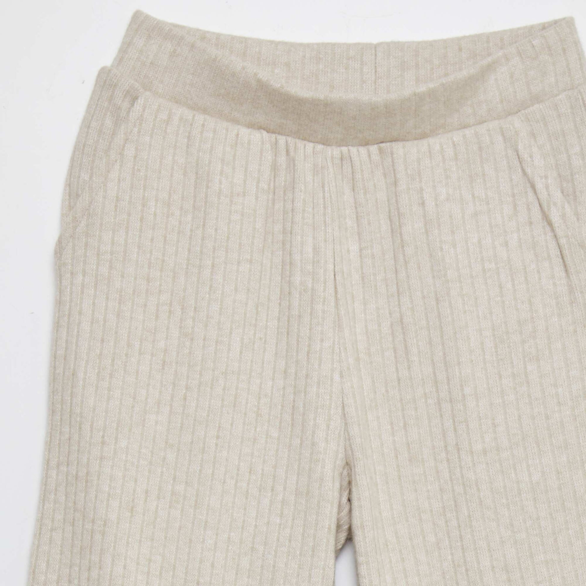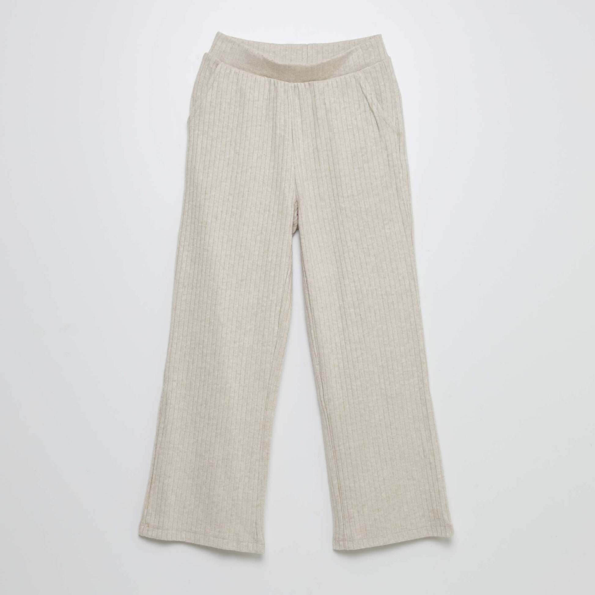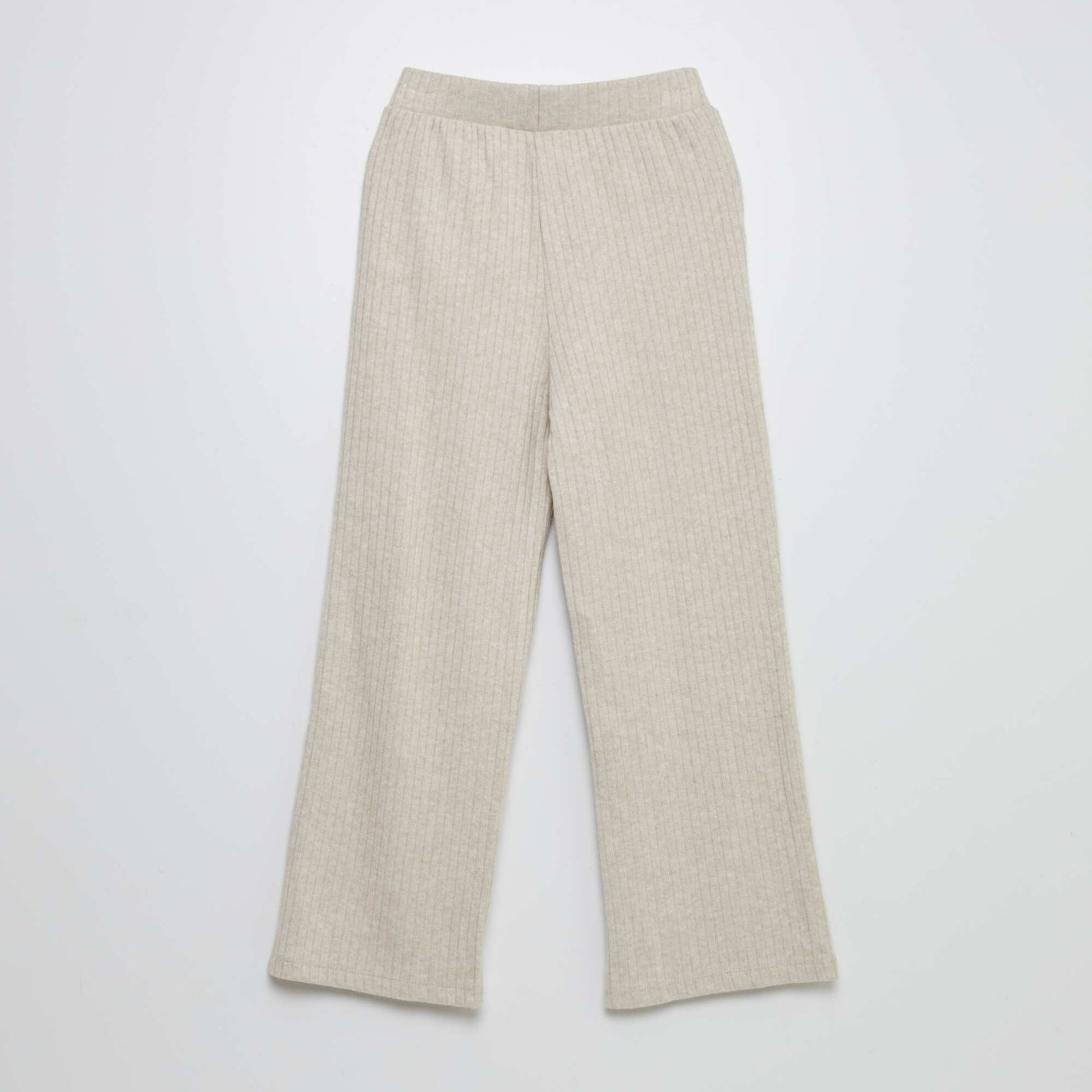 بنطلون واسع من قماش محبوك مضلع باللون البيج