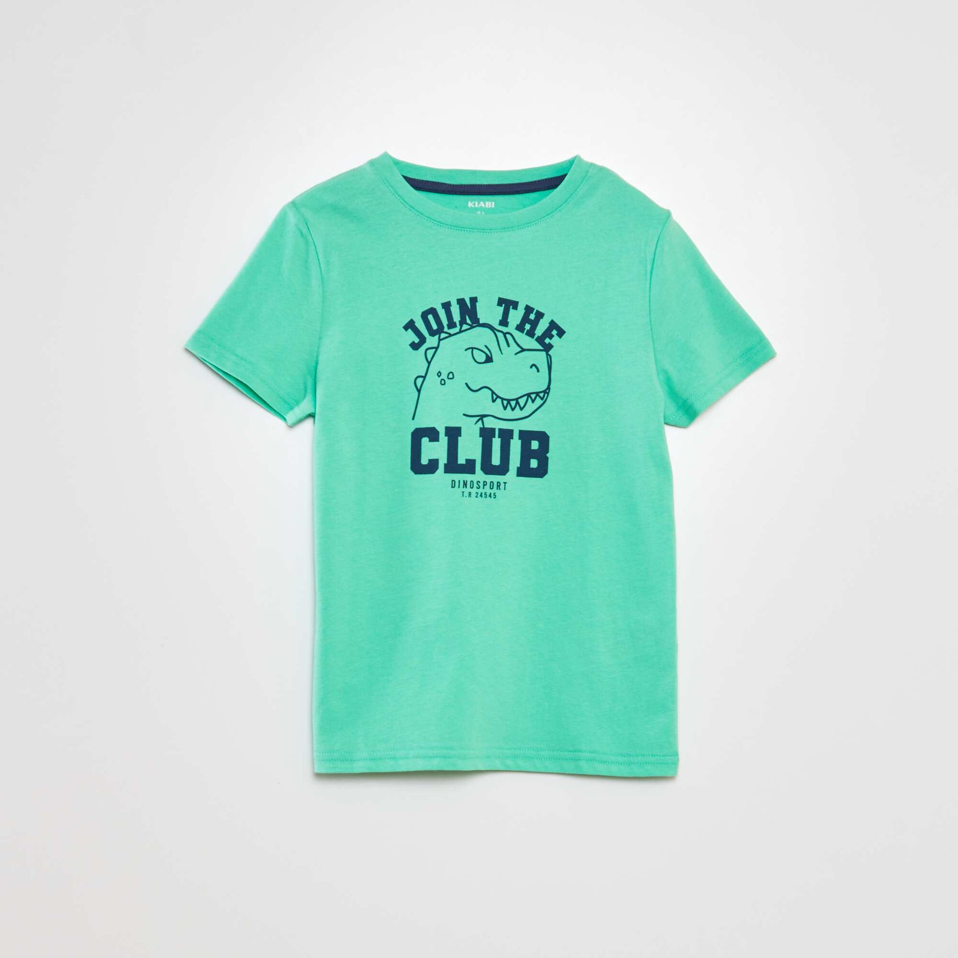 تي شيرت قطني برقبة دائرية باللون الأخضر