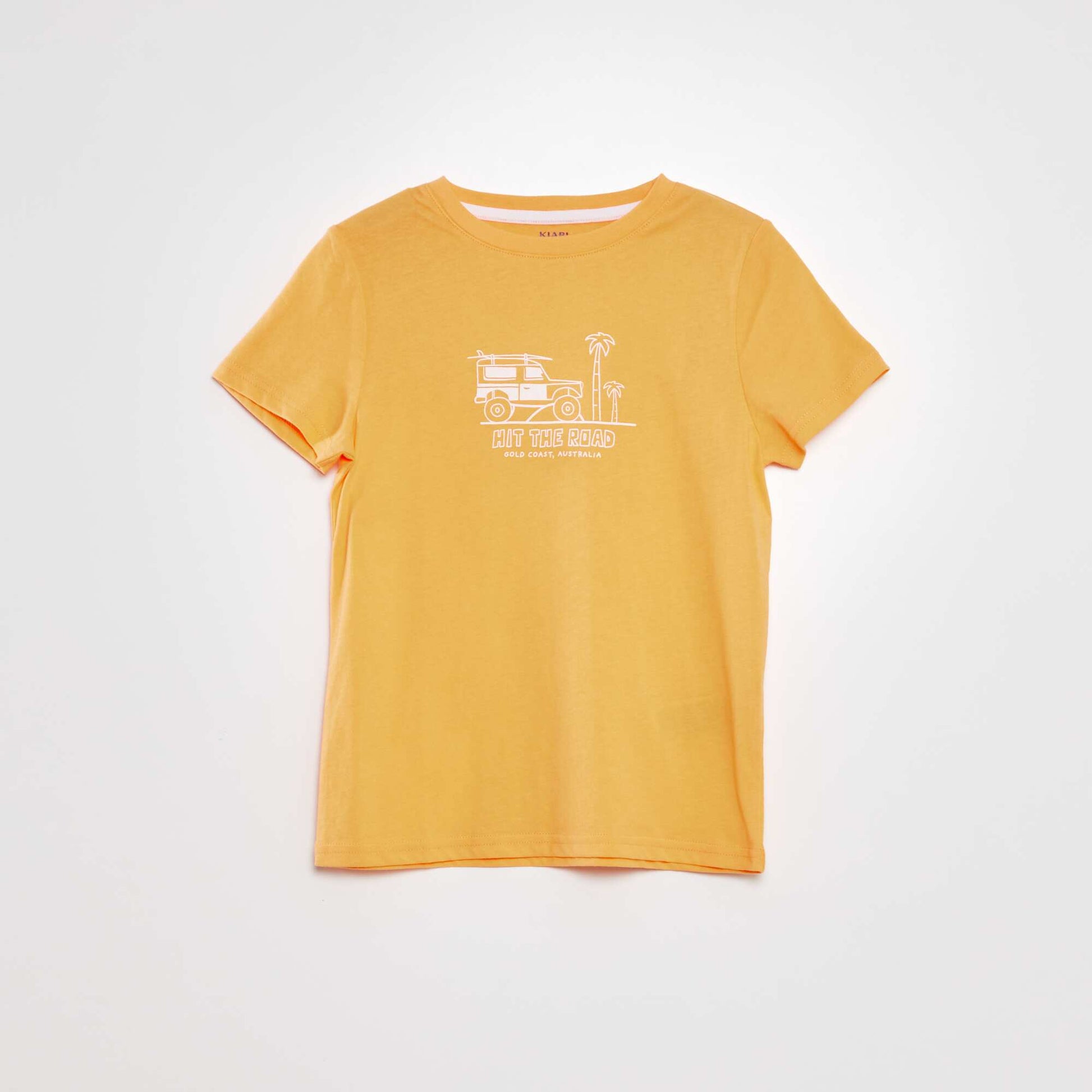 تي شيرت قطني برقبة دائرية باللون البرتقالي
