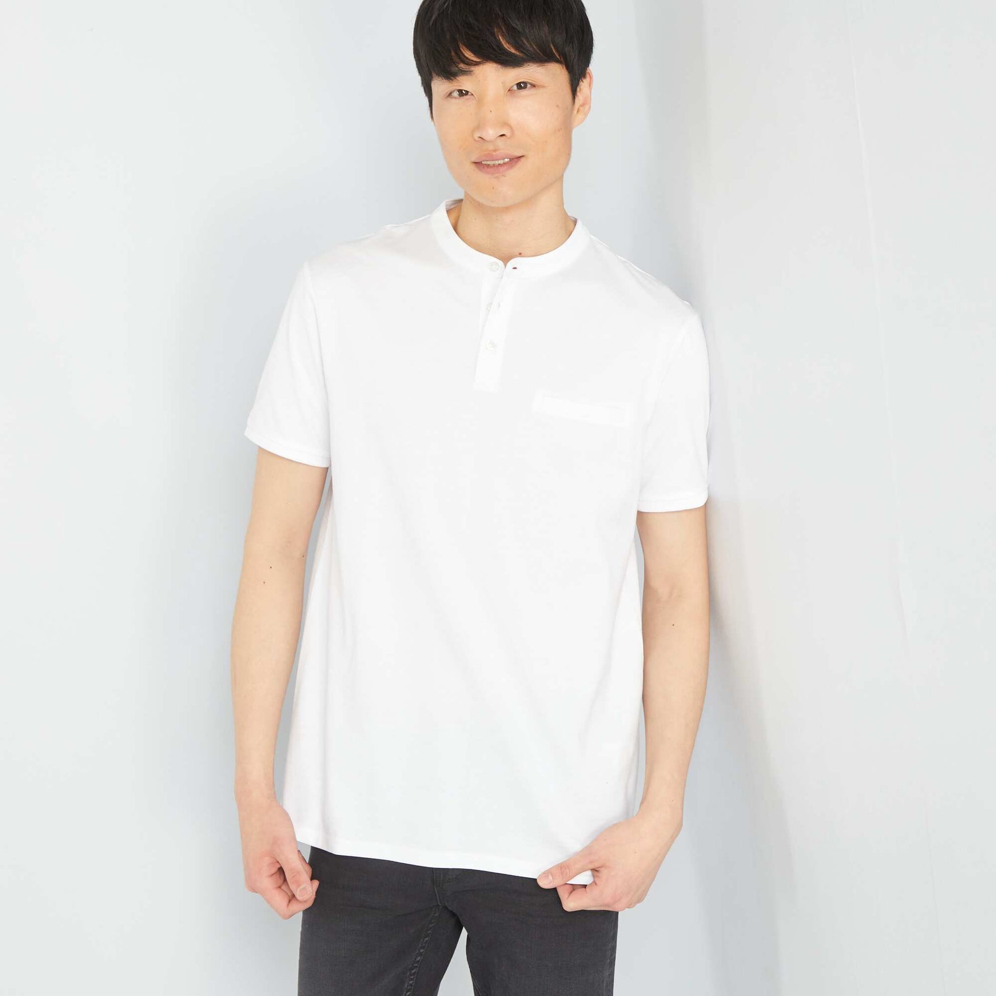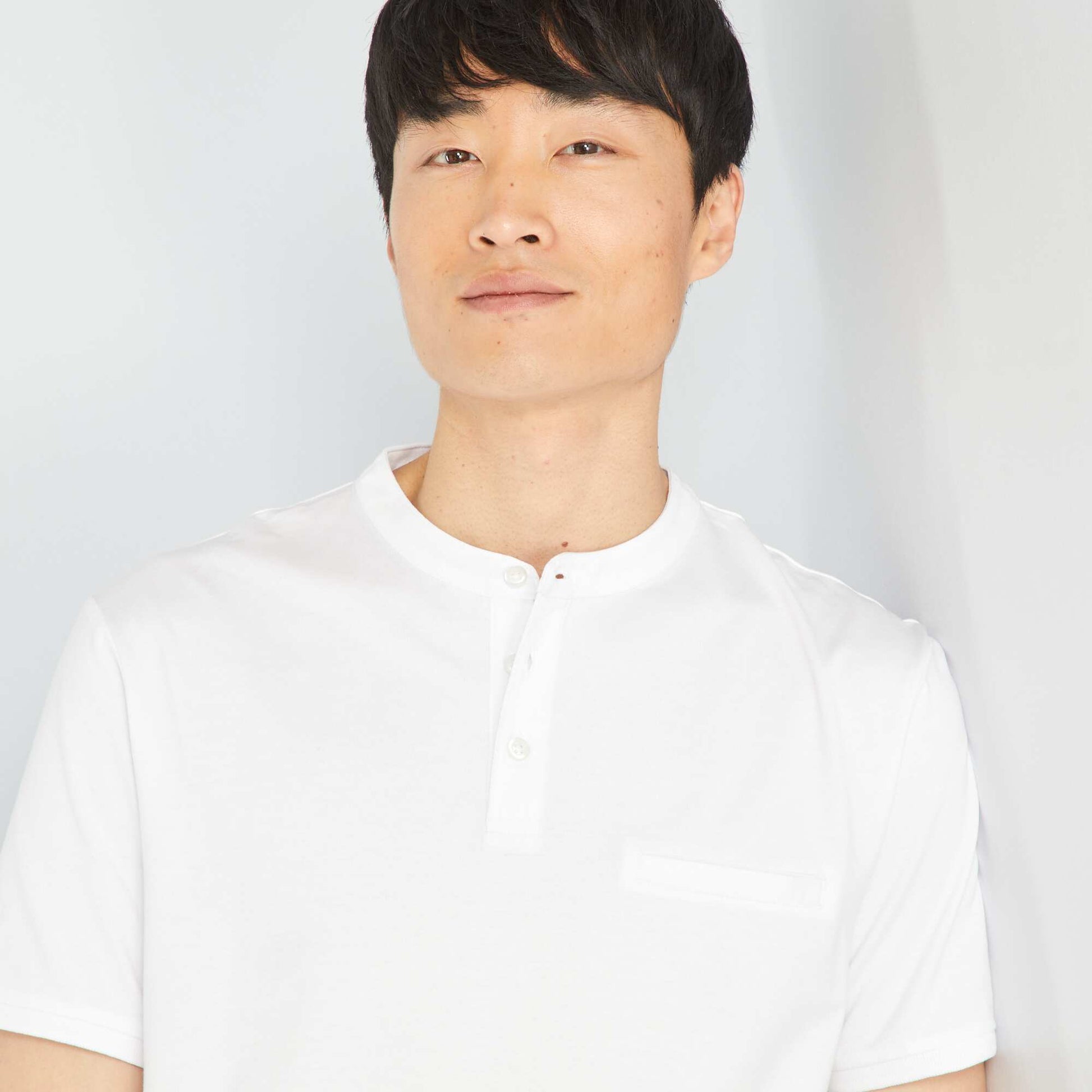 قميص بولو قصير الأكمام باللون الأبيض