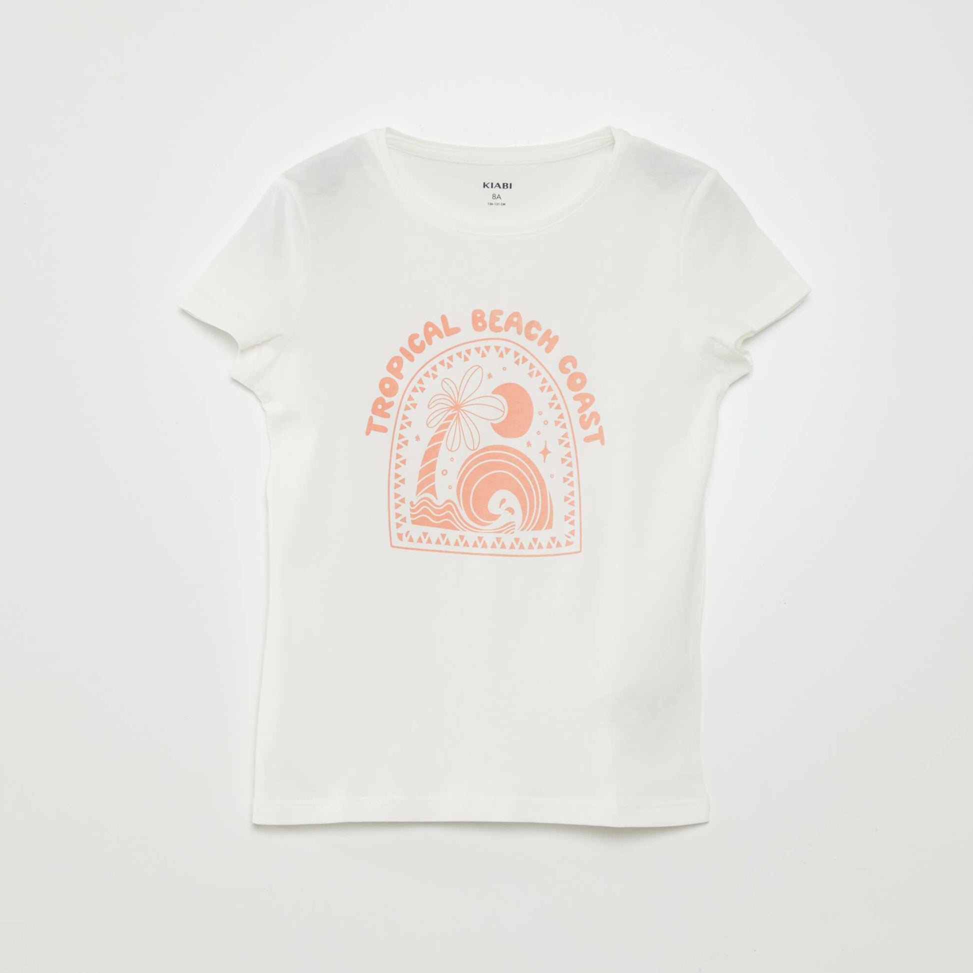 تي شيرت مطبوع بأكمام قصيرة باللون الأبيض