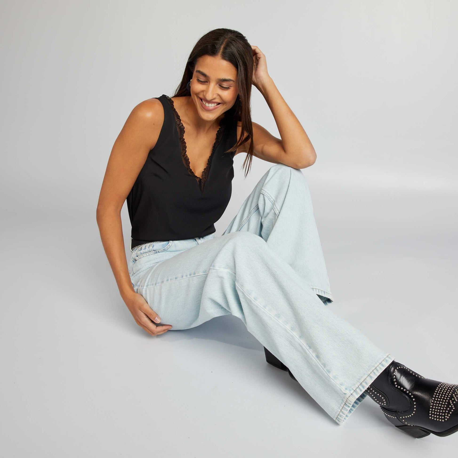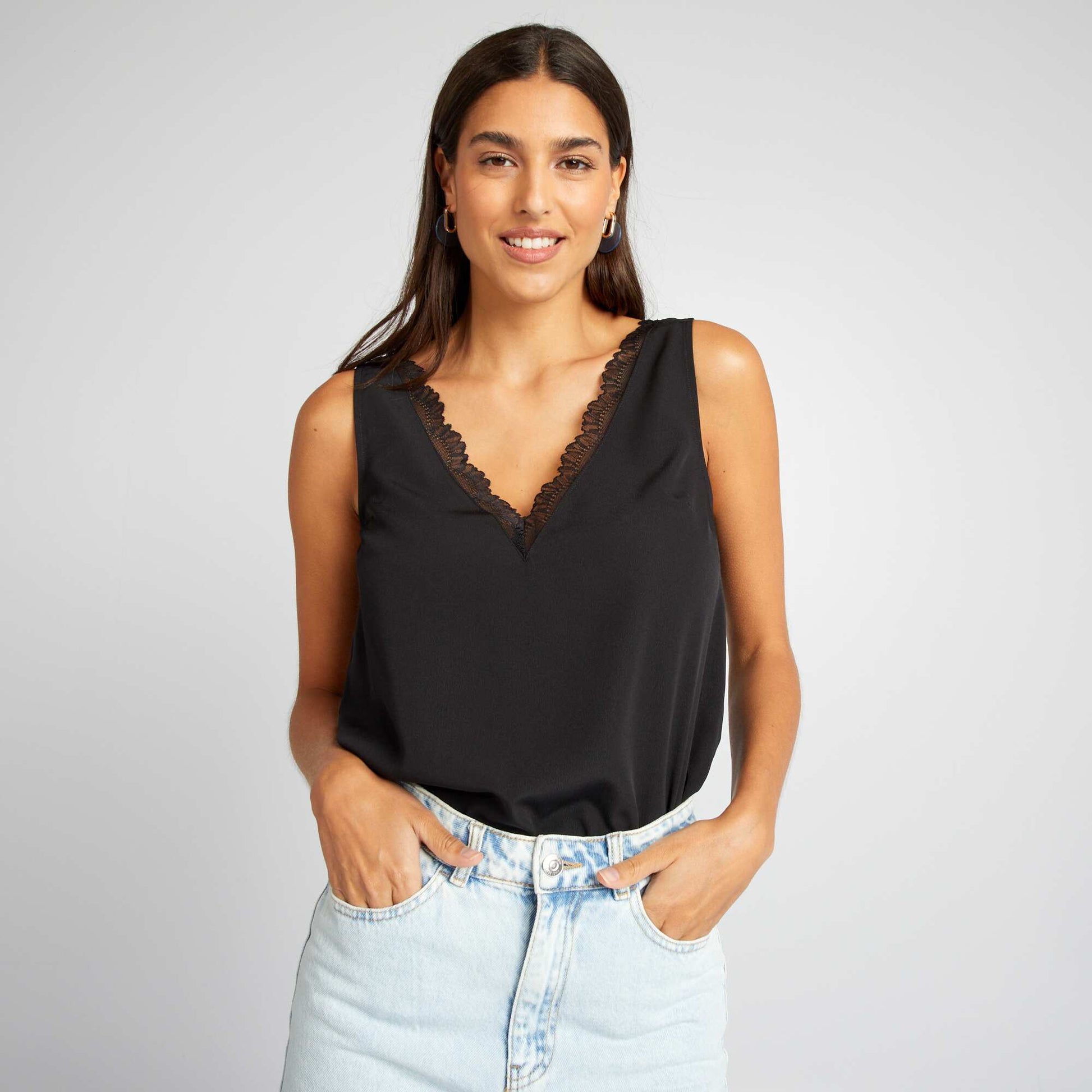 بلوزة بدون أكمام مع ياقة دانتيل باللون الأسود