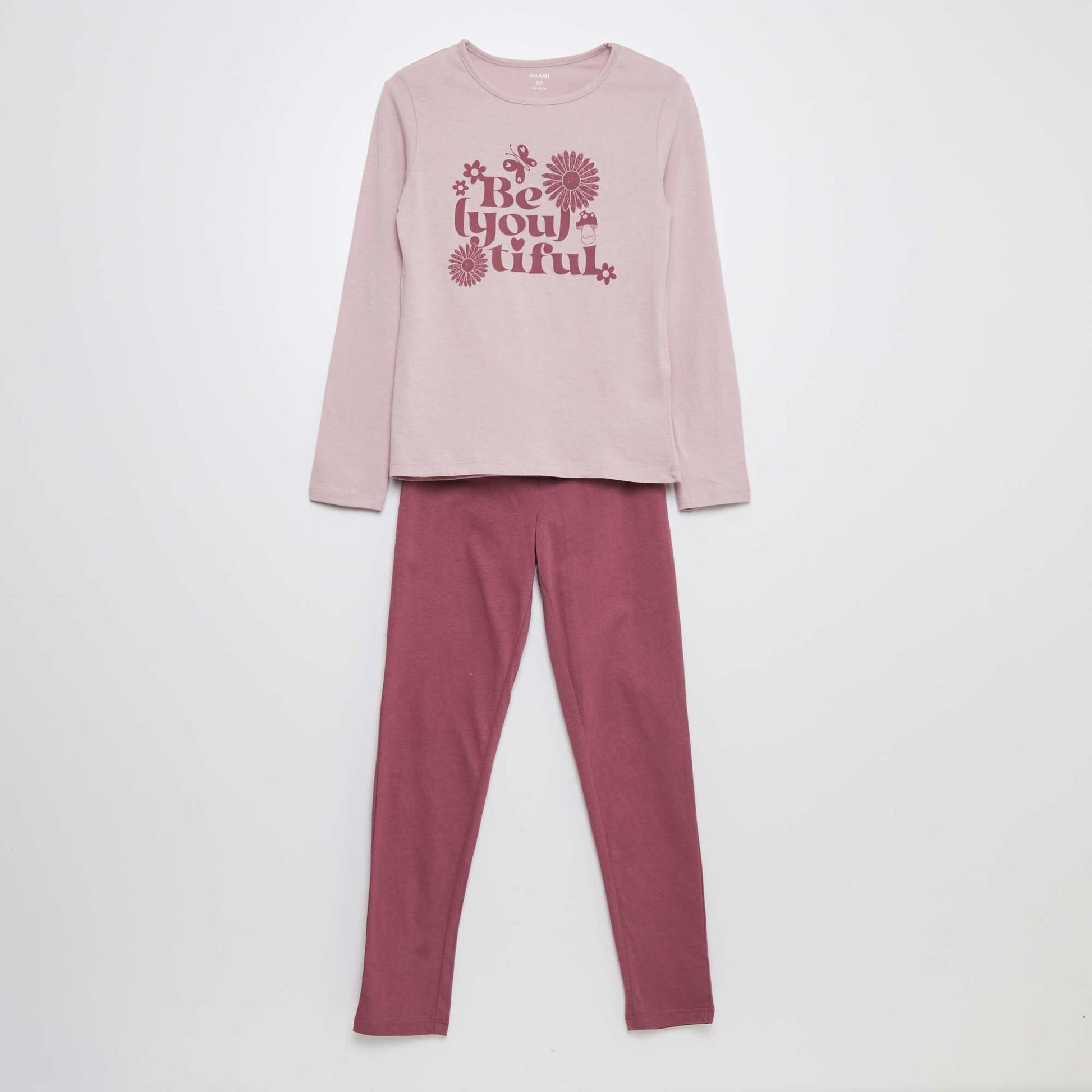 طقم بيجامة مكون من تي شيرت وبنطلون - طقم مكون من قطعتين باللون الوردي