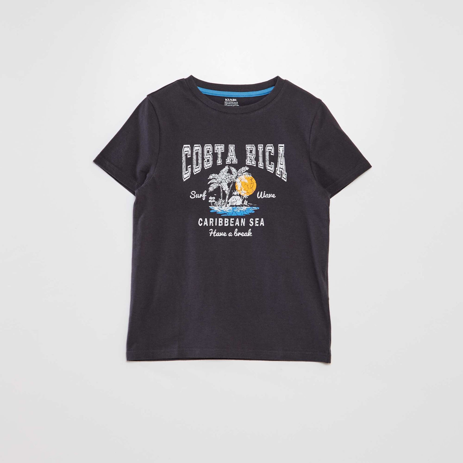 تي شيرت برقبة دائرية وأكمام قصيرة باللون الأسود