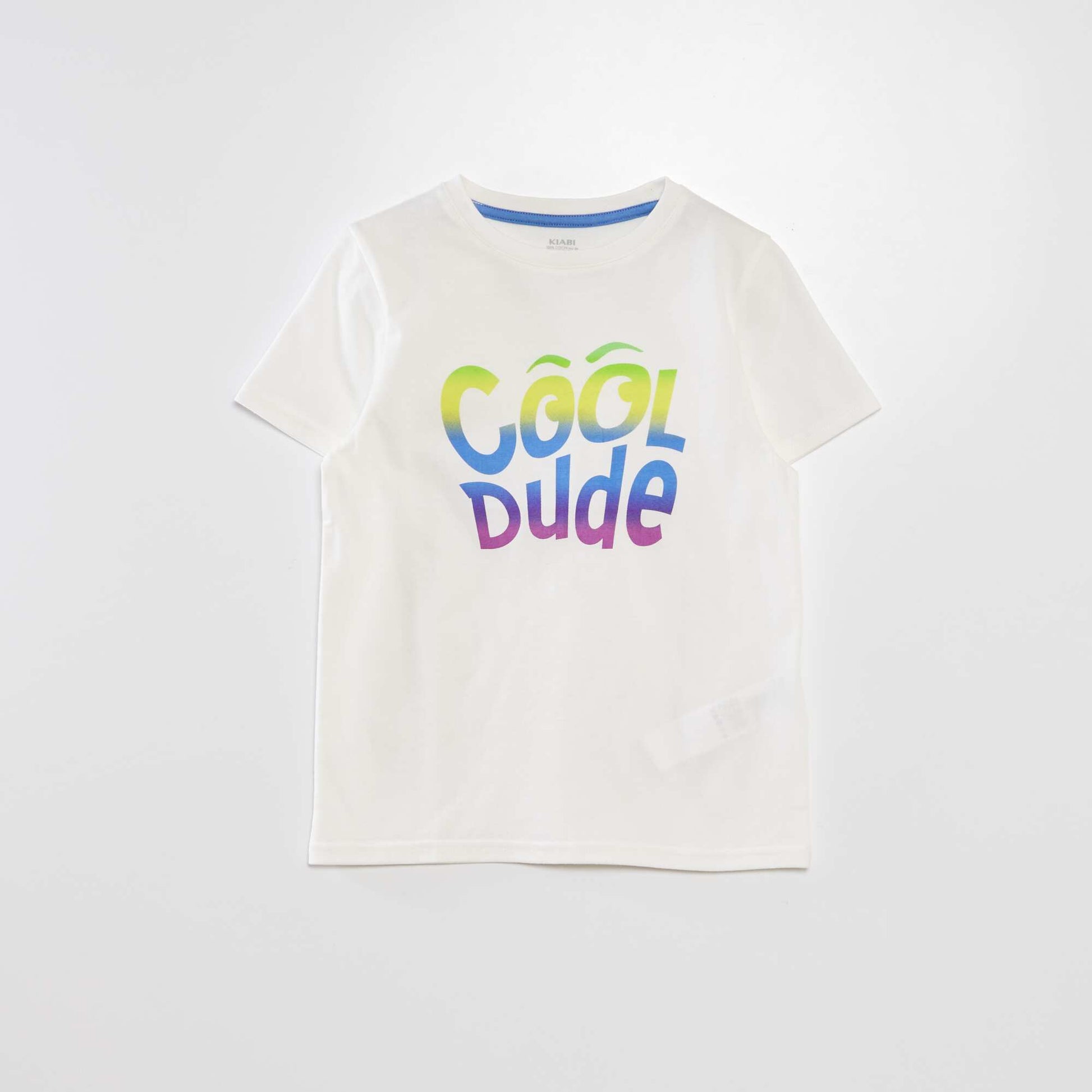 تي شيرت برقبة دائرية وأكمام قصيرة باللون الأبيض