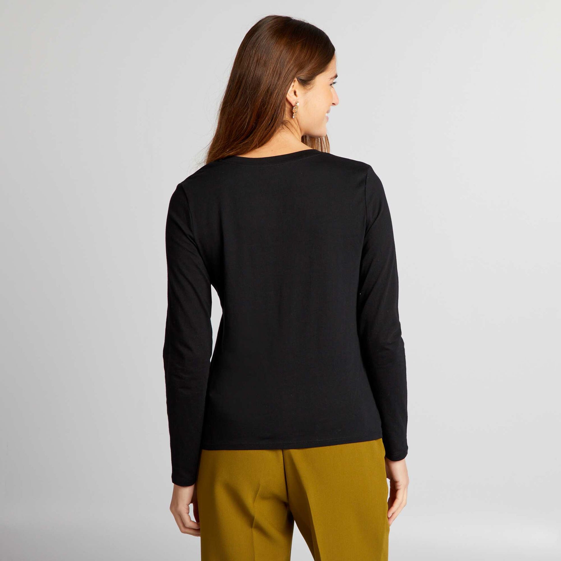 تي شيرت أسود بفتحة رقبة على شكل حرف V