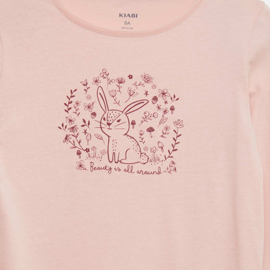 أضف إلى السلةتي شيرت قطني مطبوع باللون الوردي