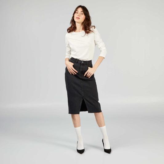 بنطال جينز بقصّة Slim-fit مع خصر قابل للتعديل باللون الأسود