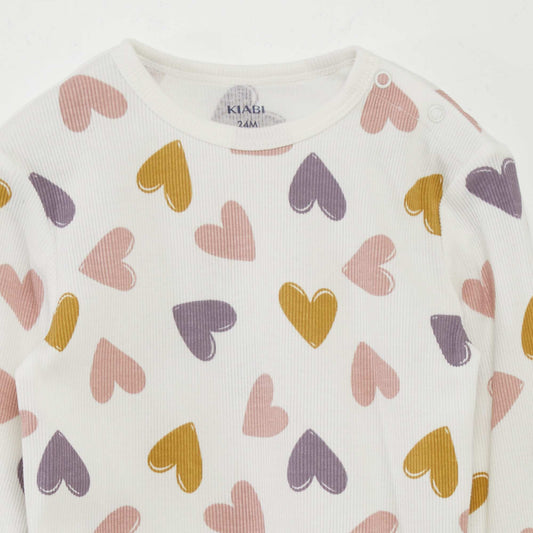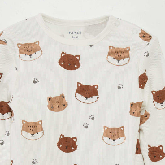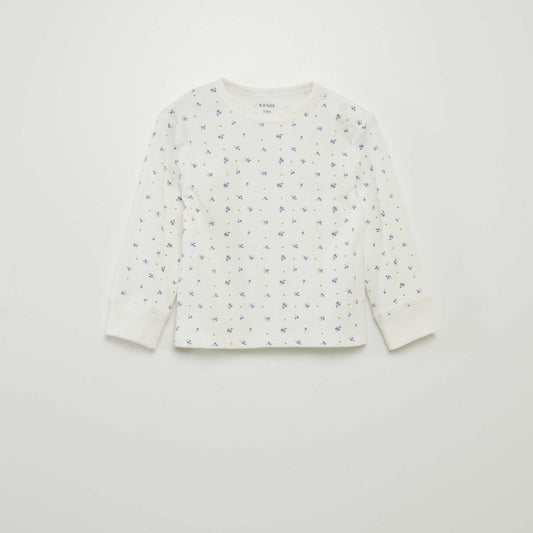 أضف إلى السلةطقم بيجامة مضلع ومطبوع - قطعتين - أبيض