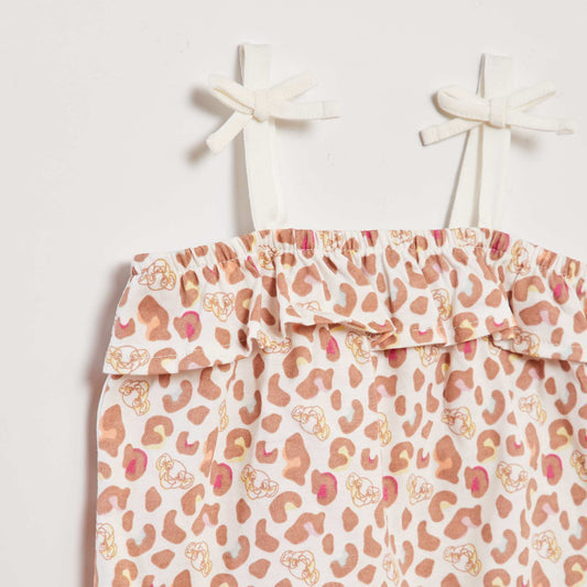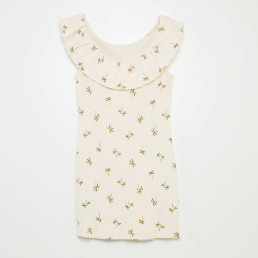 -30%فستان منقوش بتنورة كاملة مع حافة مكشكشة باللون الأصفر
