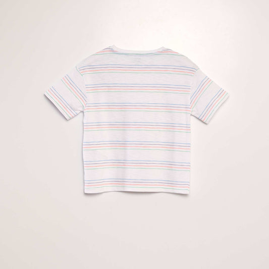 أضف إلى السلةتي شيرت بخطوط ملونة باللون الأبيض
