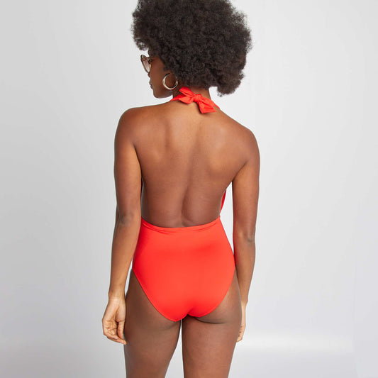 -30%ملابس سباحة من قطعة واحدة من القماش المطوي باللون الأحمر