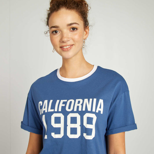 -30%فستان تي شيرت مطبوع باللون الأزرق