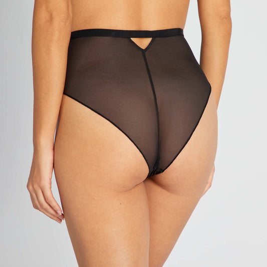 -40%سروال داخلي تانجا من الدانتيل والتول باللون الأسود