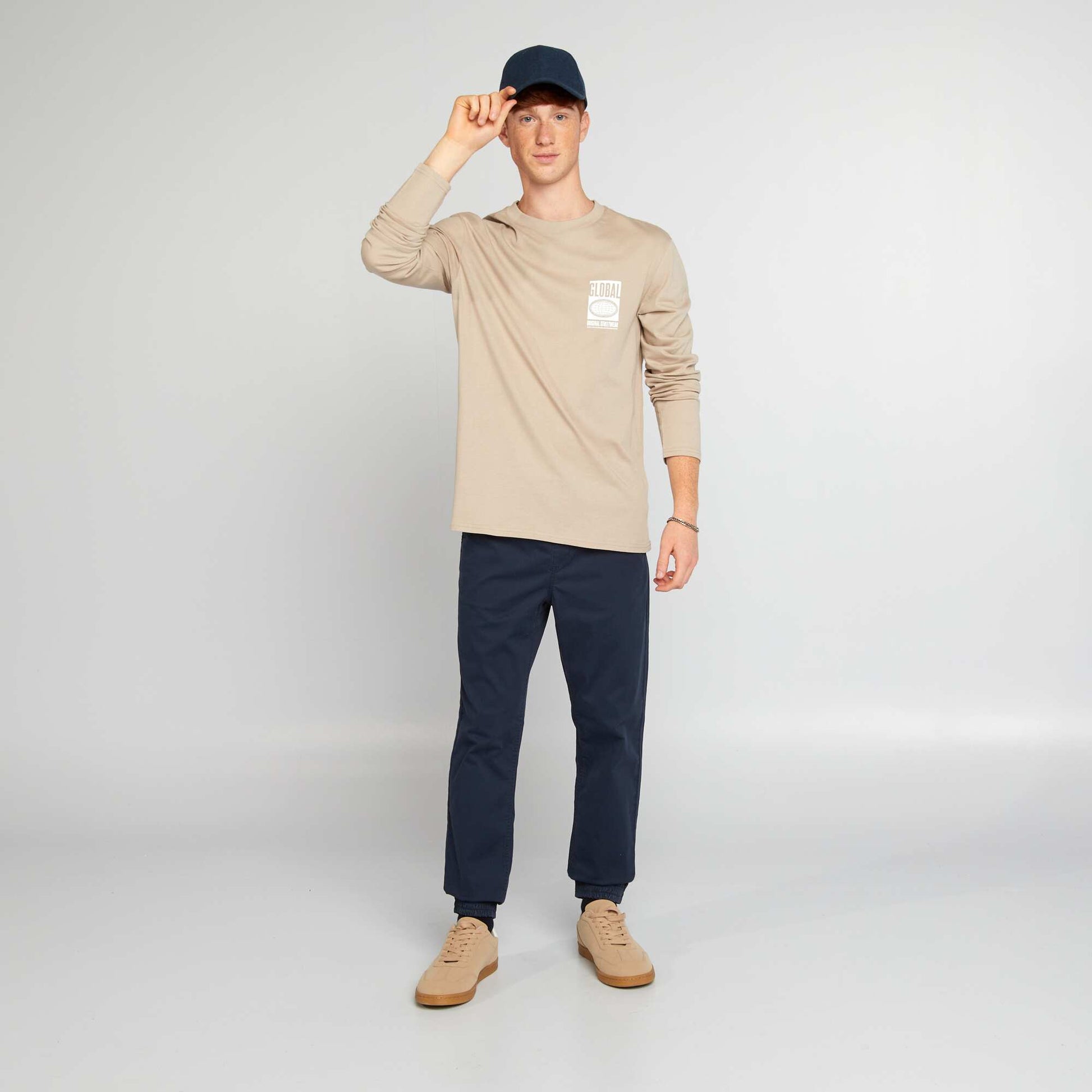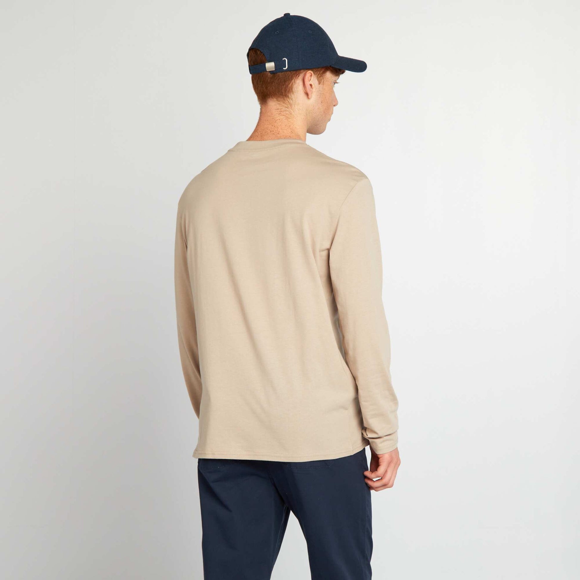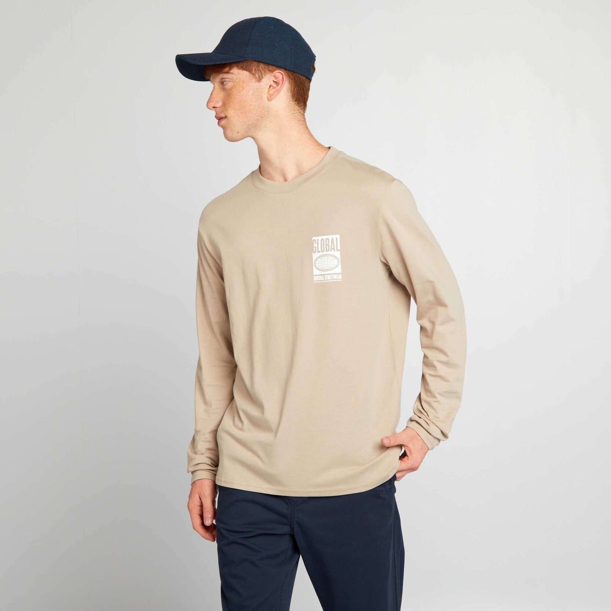 تي شيرت جيرسي بأكمام طويلة باللون البيج