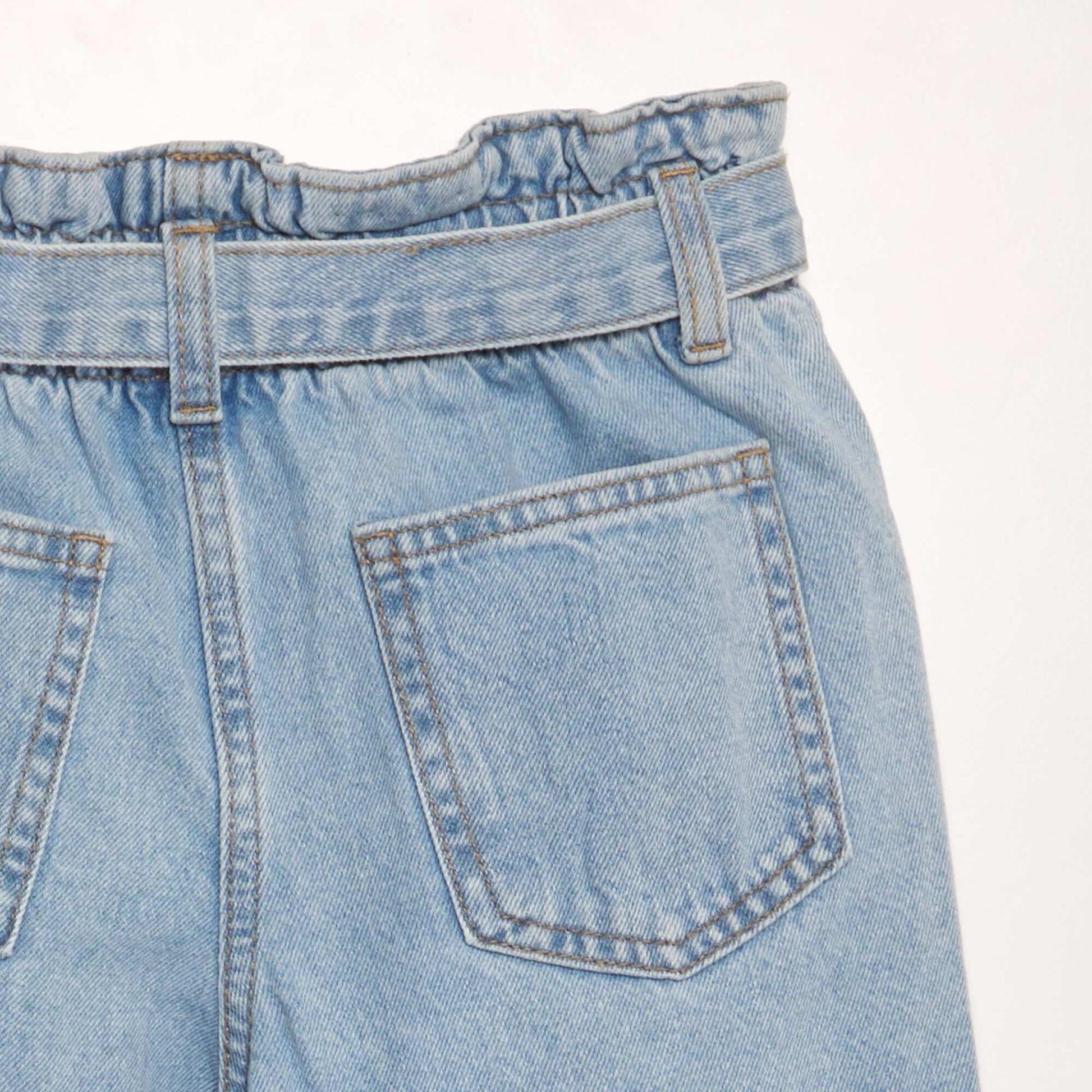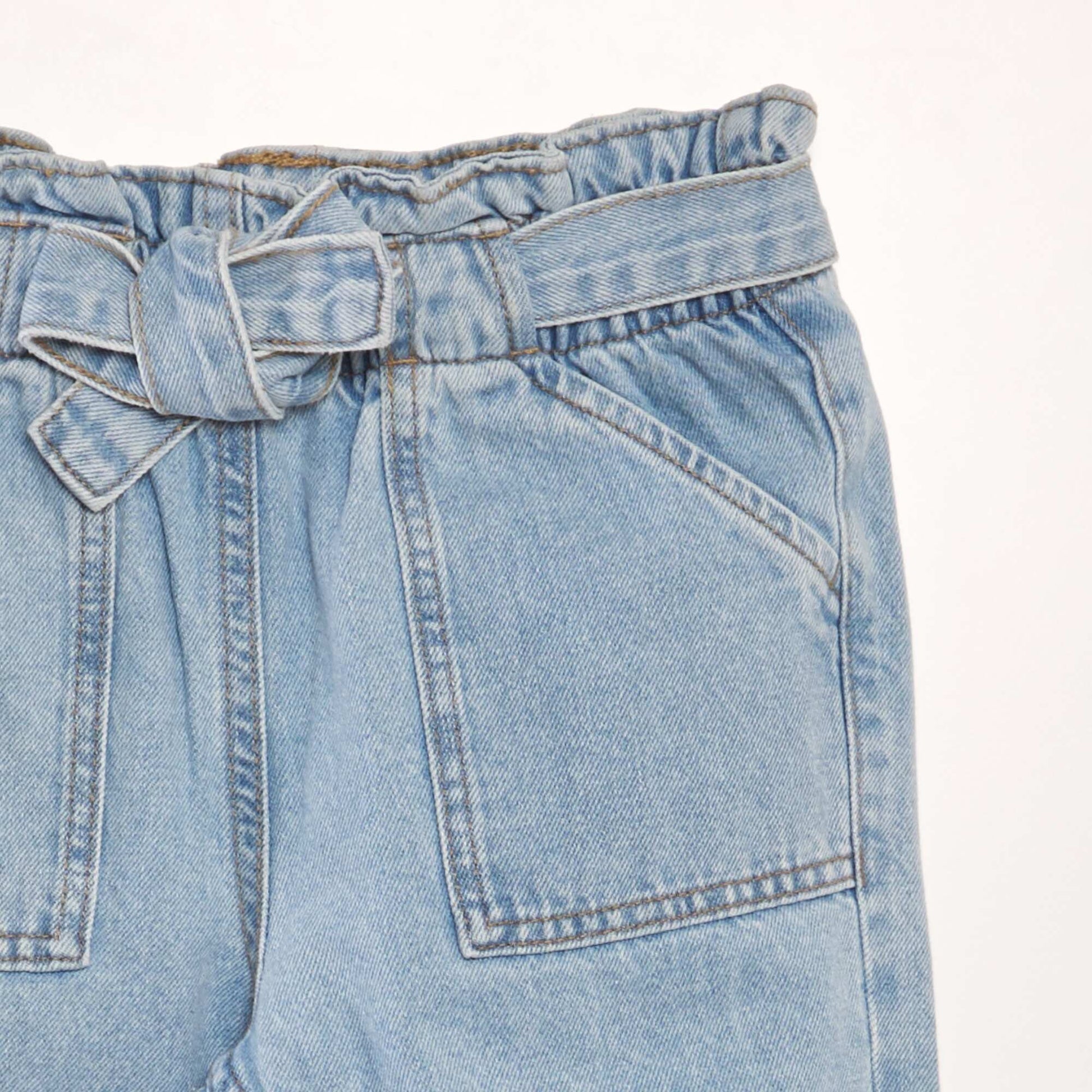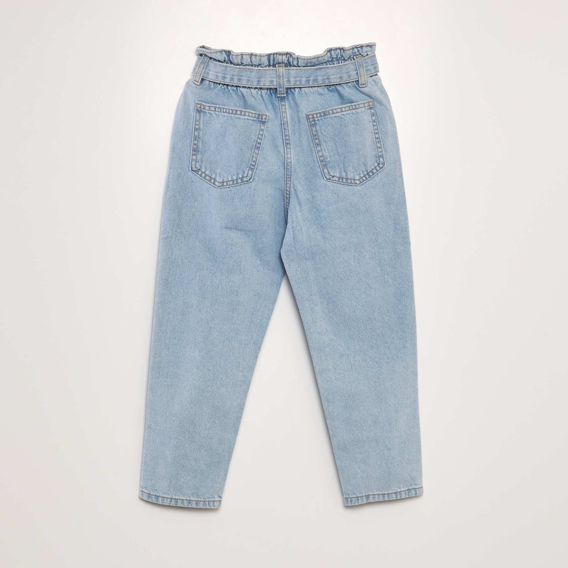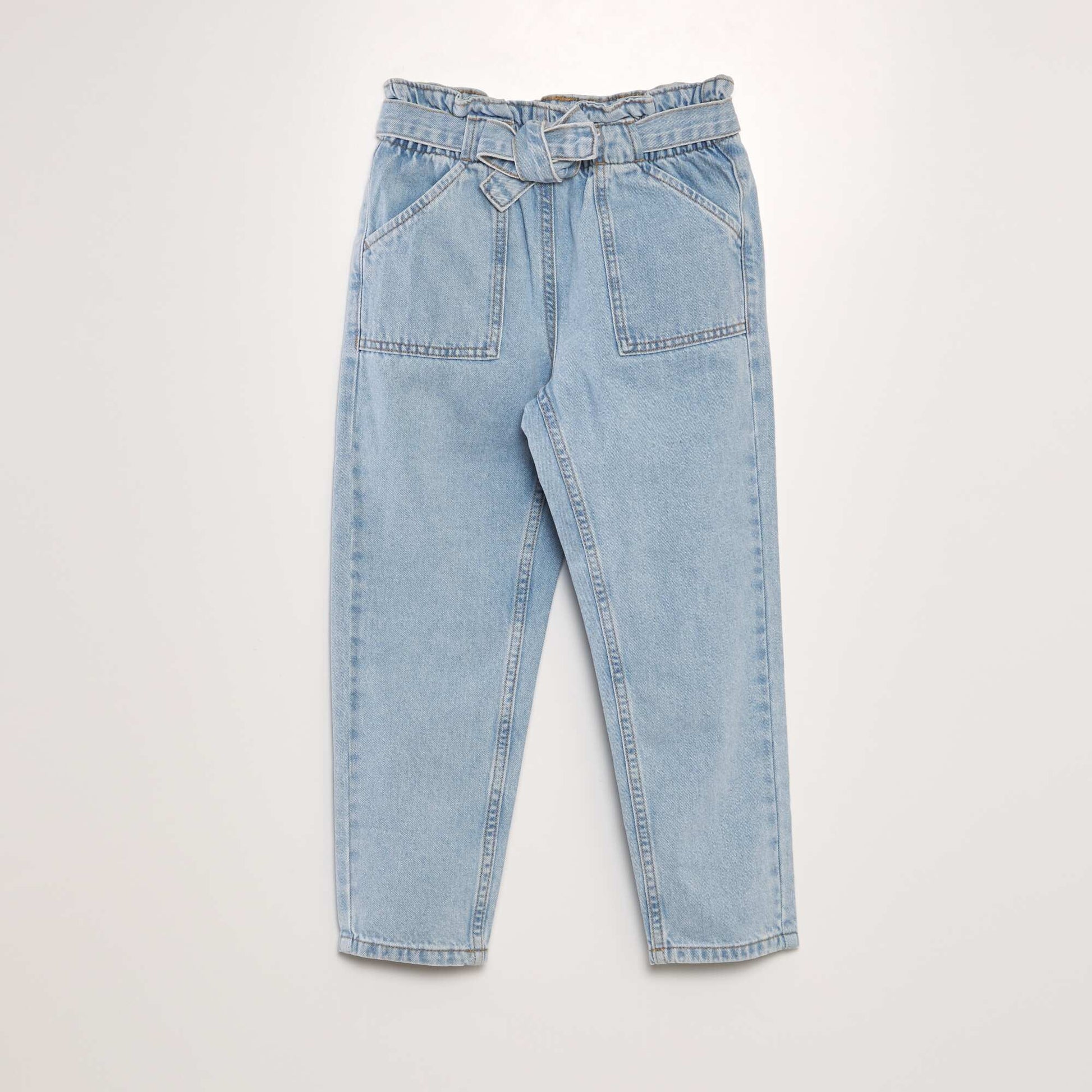 بنطلون جينز للأمهات بحزام عند الخصر باللون الأزرق