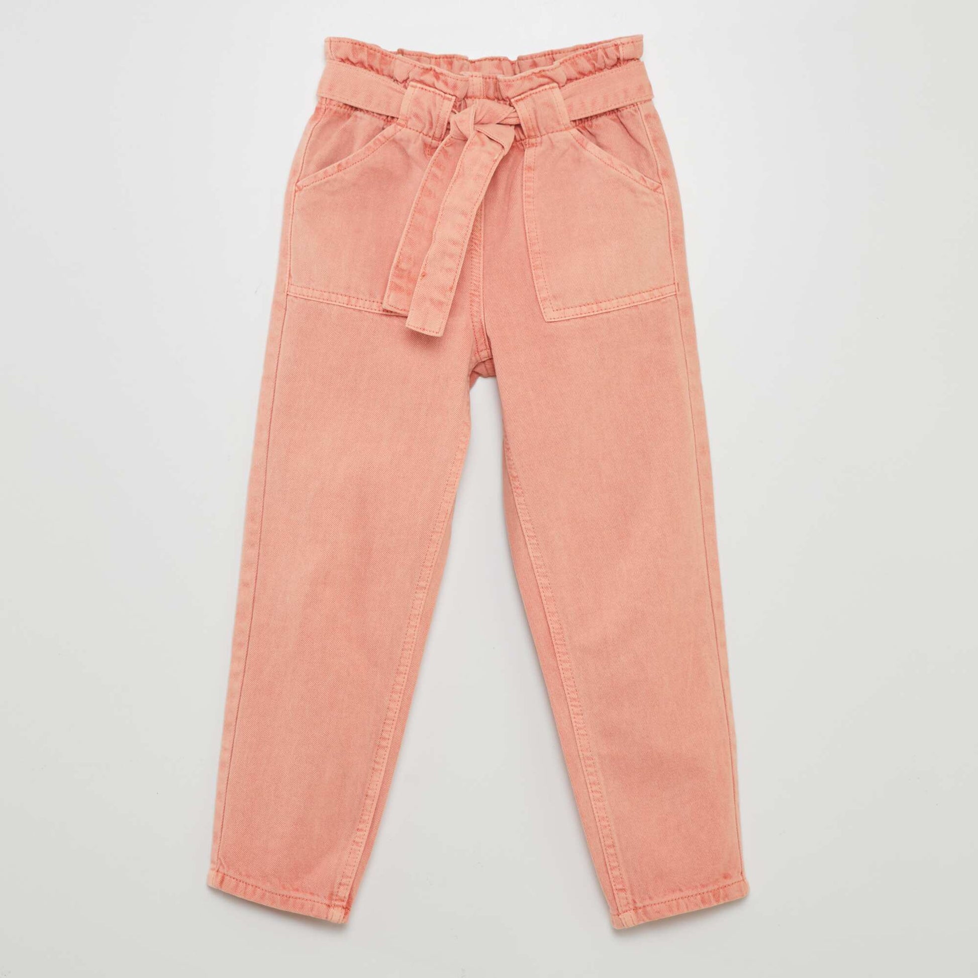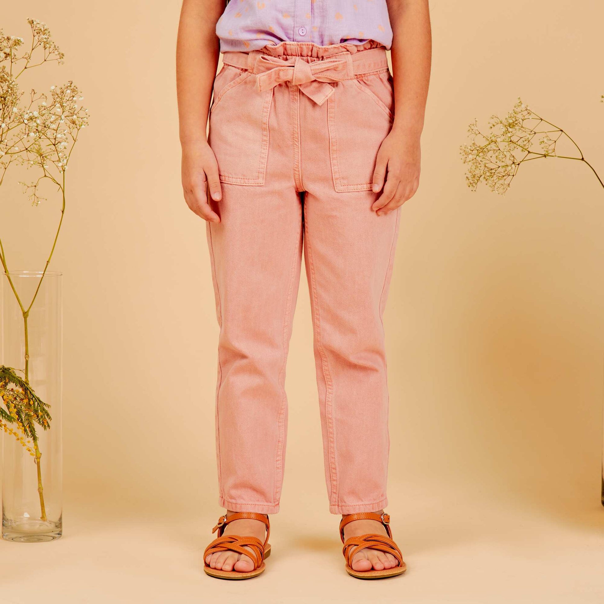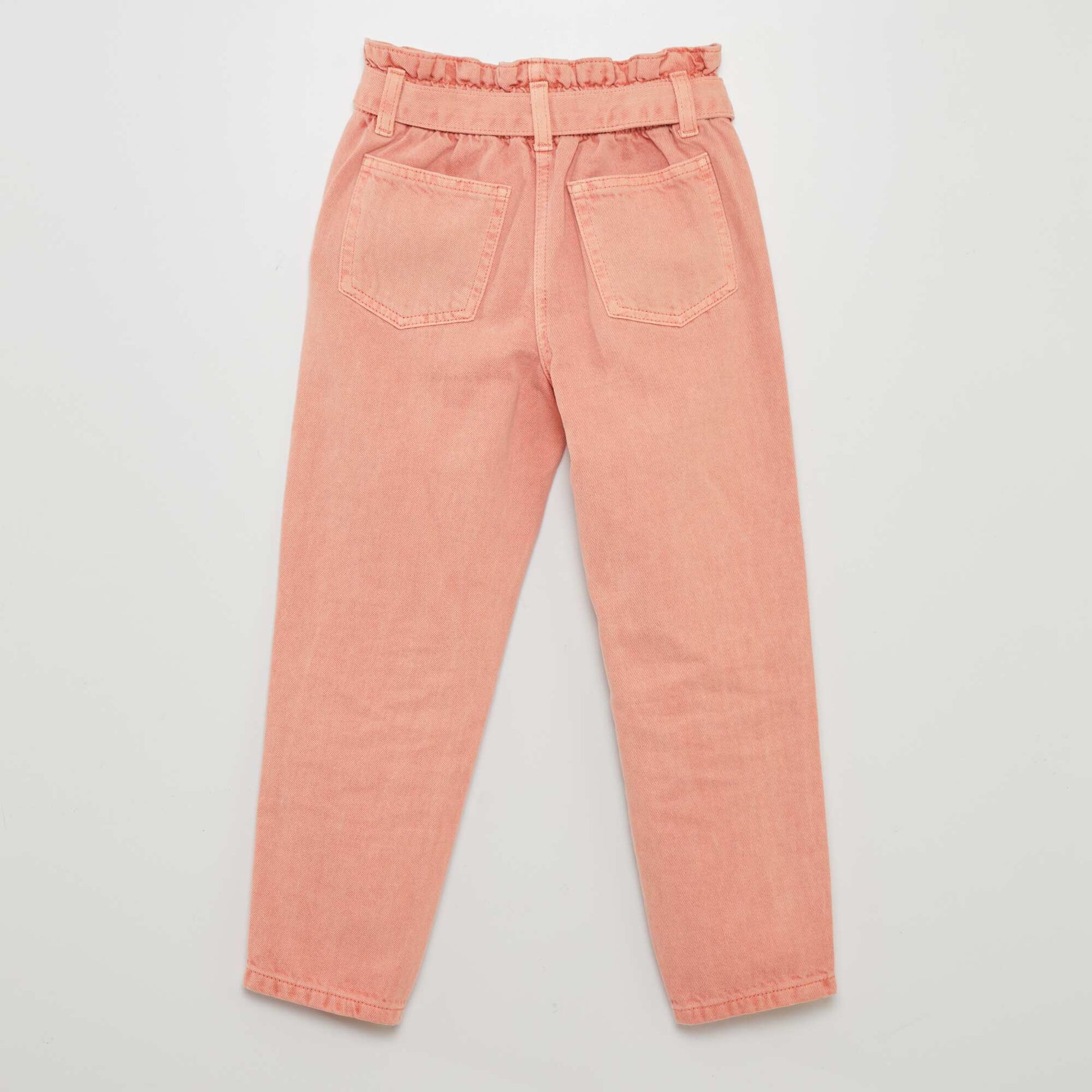 بنطلون جينز للأمهات بحزام عند الخصر باللون الوردي