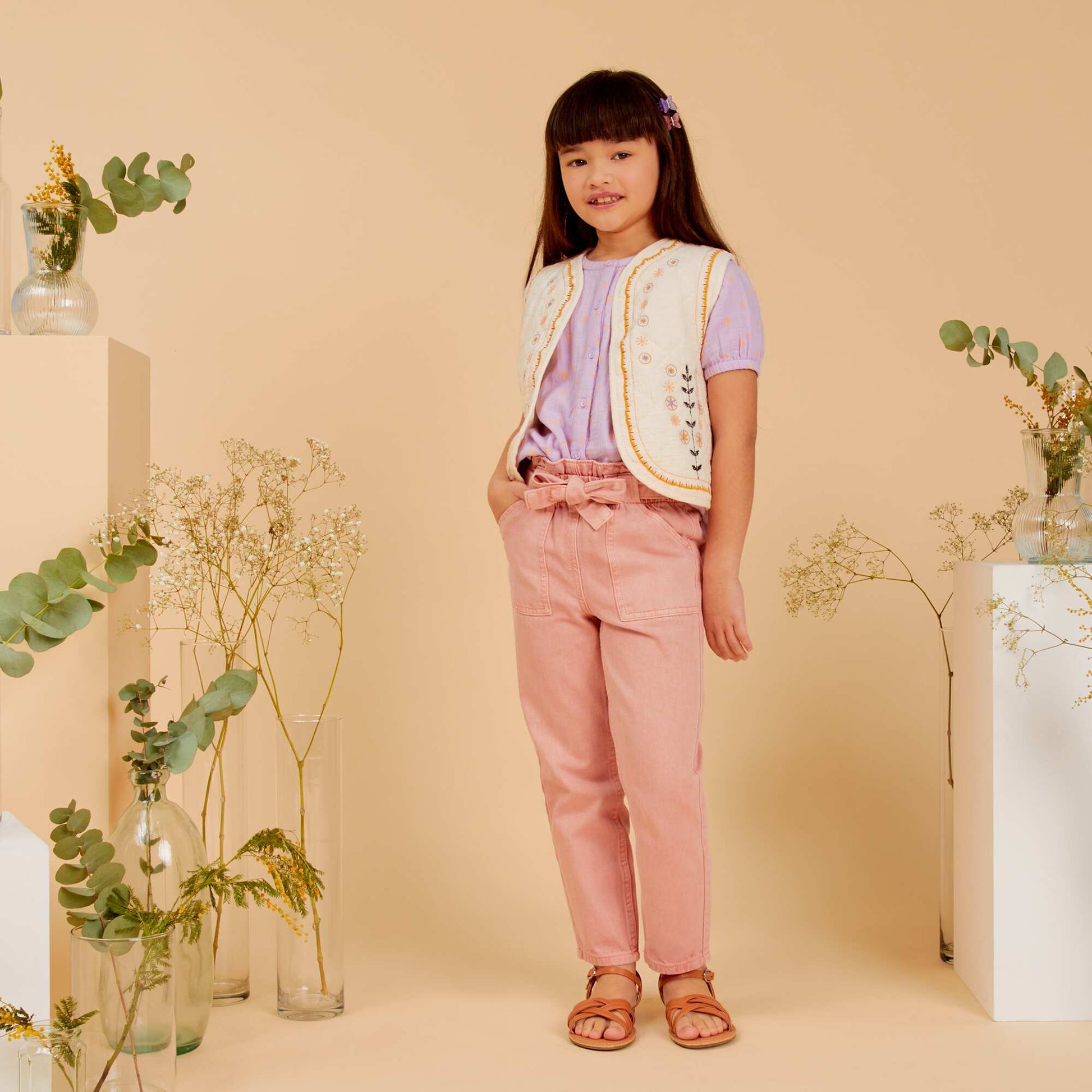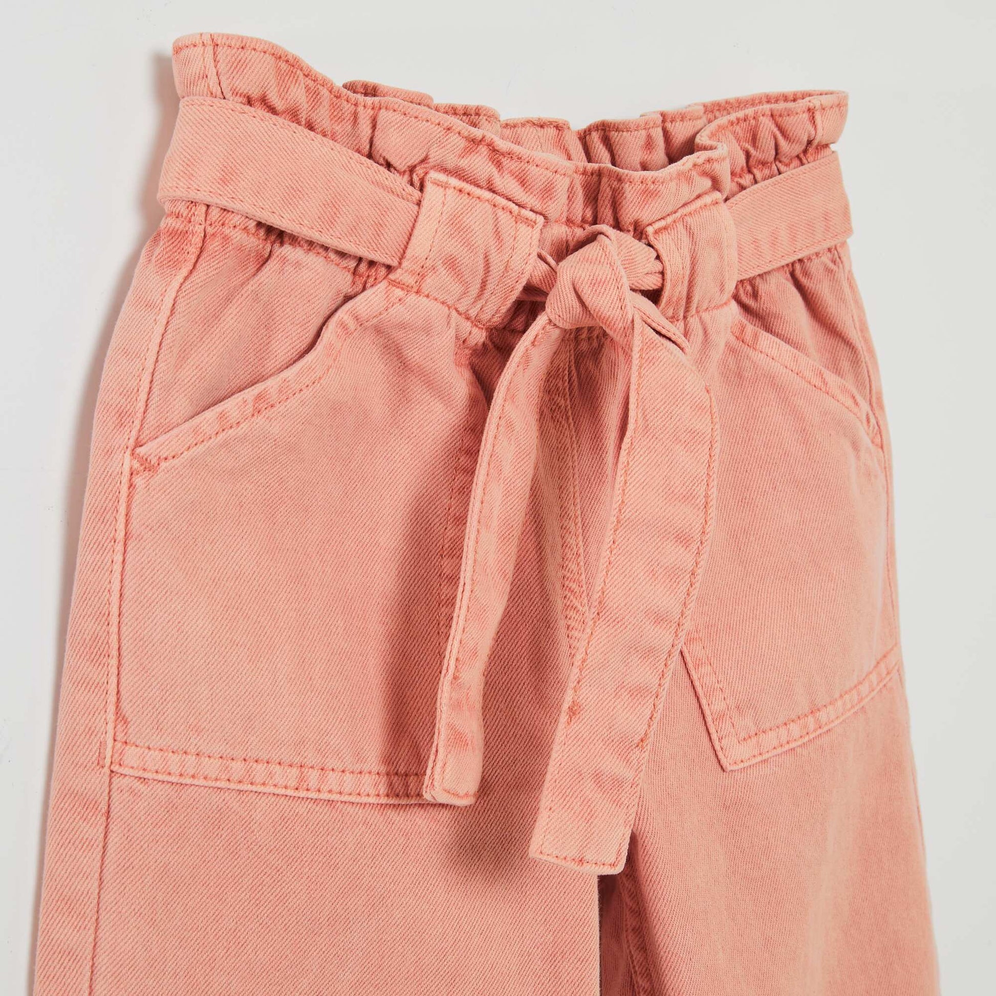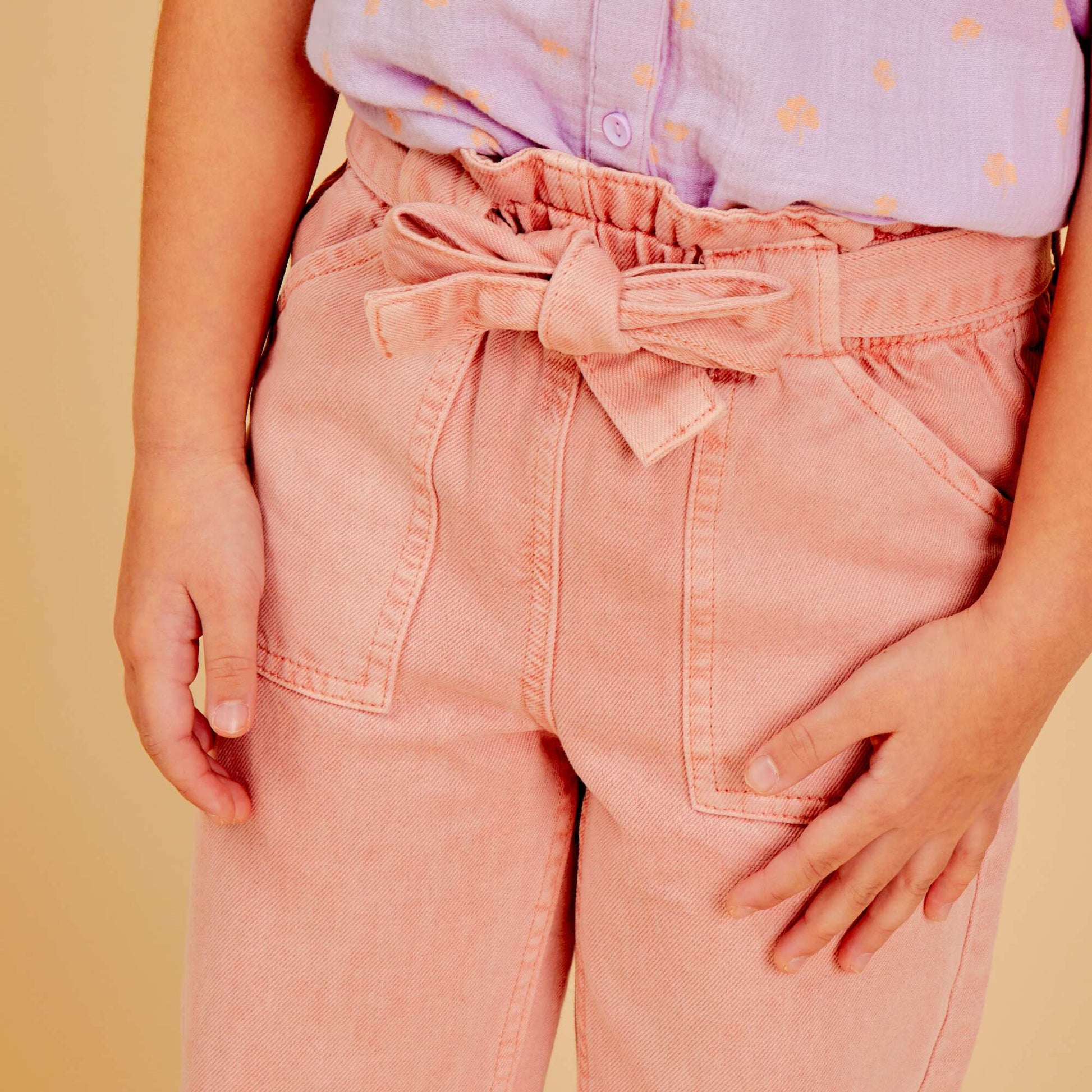 بنطلون جينز للأمهات بحزام عند الخصر باللون الوردي