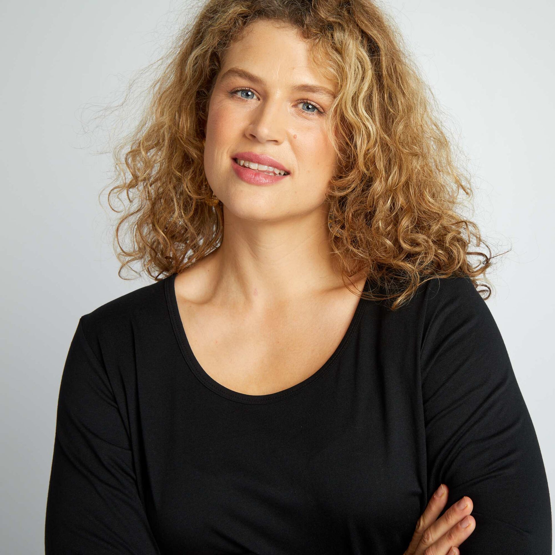 تي شيرت جيرسي سادة بأكمام طويلة باللون الأسود