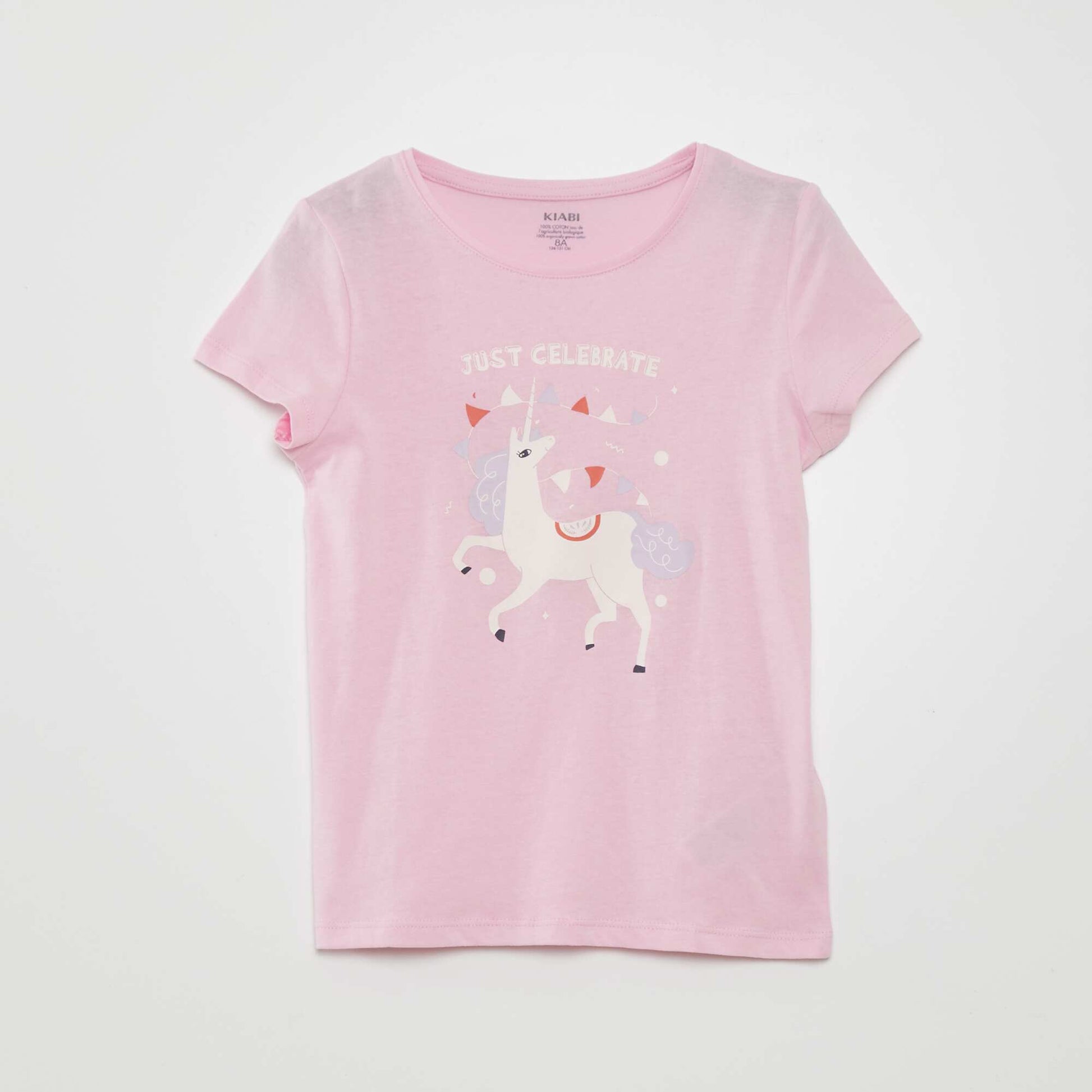 تي شيرت جيرسيه محبوك مطبوع باللون الوردي