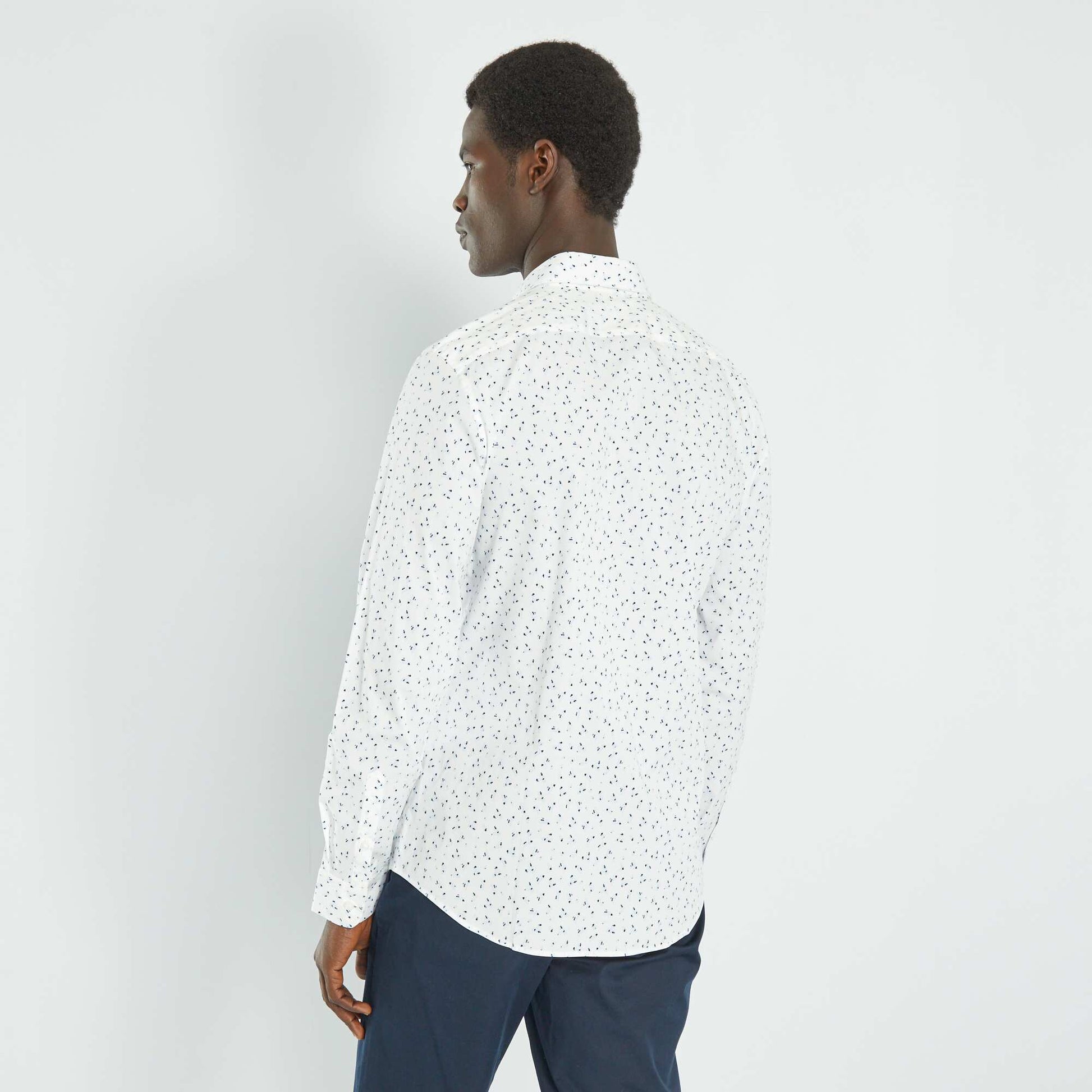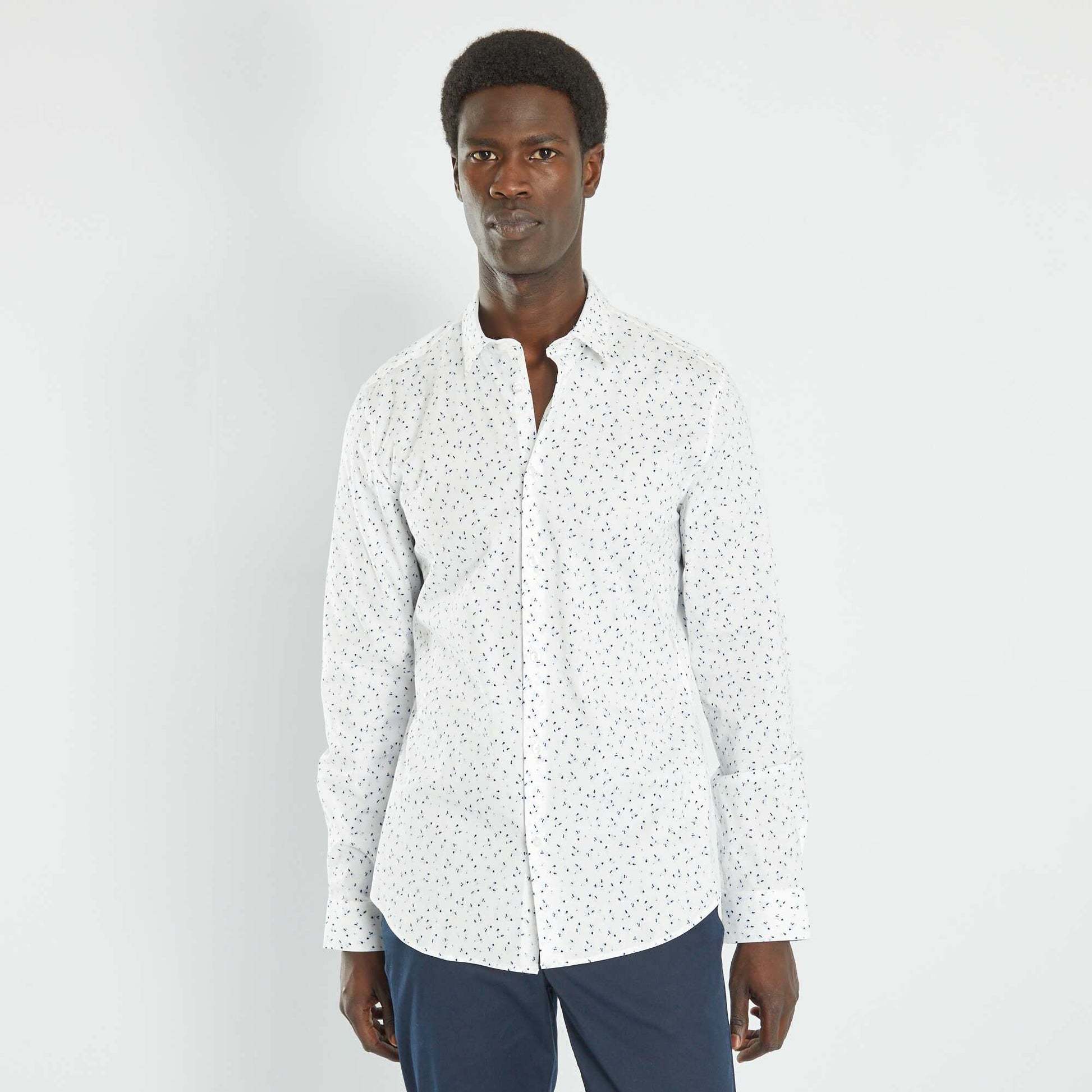 قميص منقوش بقصّة Slim-fit باللون الأبيض