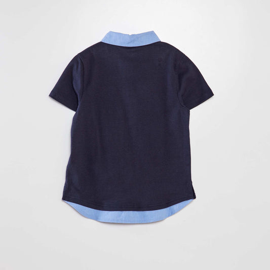 أضف إلى السلةقميص بولو قطني بياقة متباينة باللون الأزرق