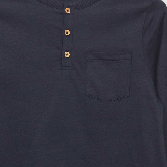 -30%تي شيرت بأكمام طويلة وياقة هنلي باللون الأزرق
