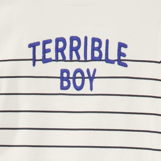 -40%تي شيرت جيرسي محبوك عليه عبارة "Terrible boy" من SNOW_RAYU