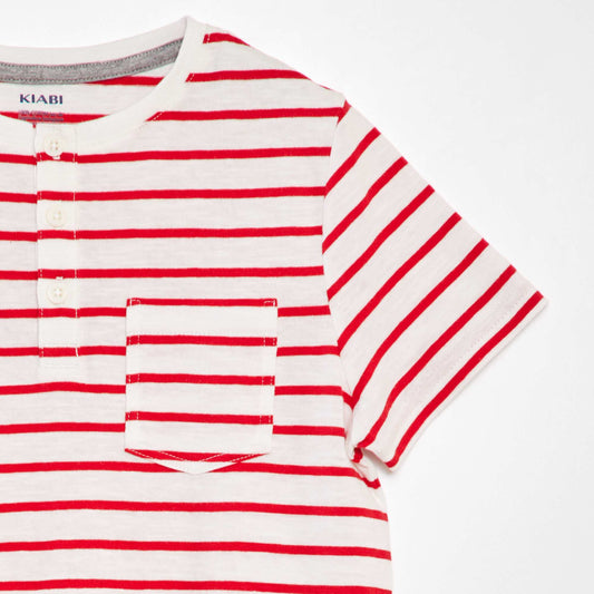 -30%تي شيرت مخطط بياقة الجد باللون الأحمر