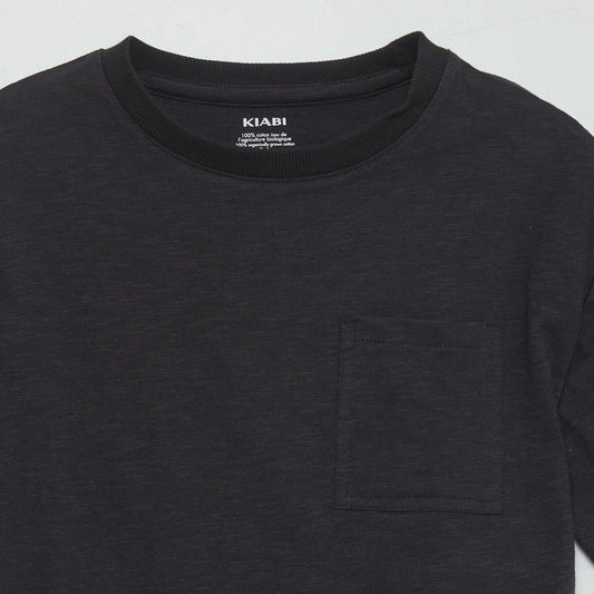 -30%تي شيرت فضفاض بياقة دائرية باللون الأسود
