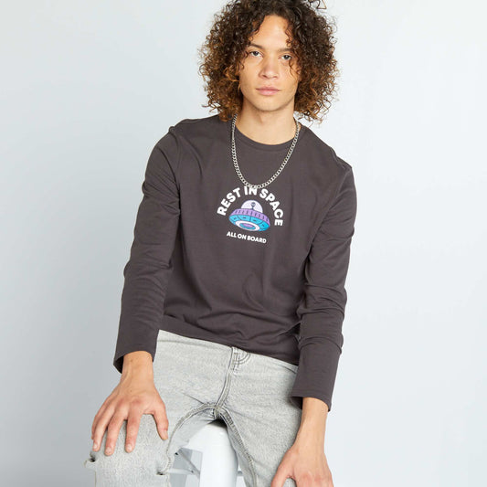 -40%تي شيرت برقبة دائرية وأكمام طويلة باللون الأسود