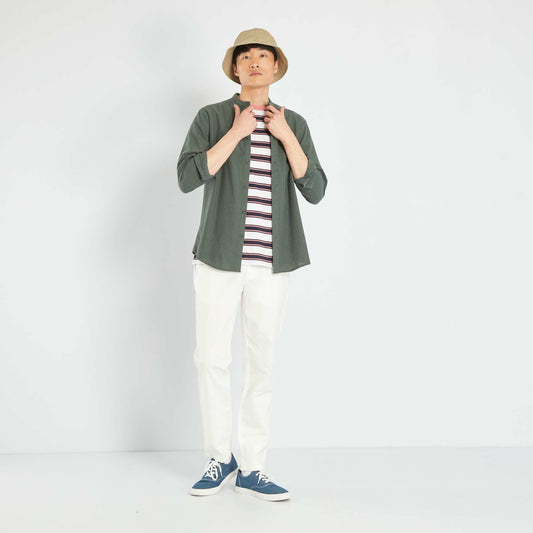 -30%قميص عضلي بأكمام طويلة باللون الكاكي