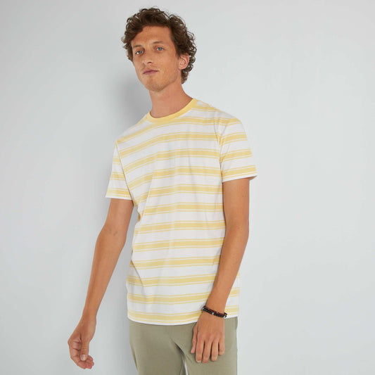 -50%تي شيرت جيرسي مخطط باللون الأصفر الذهبي