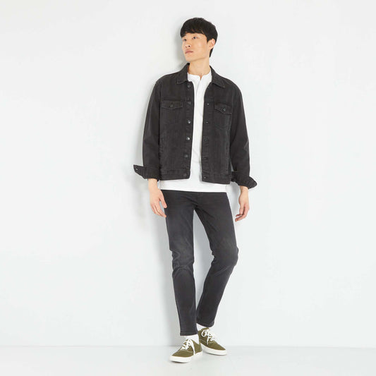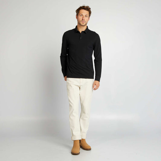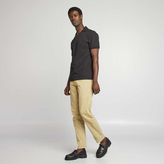 -30%قميص بولو من القطن بيكيه مع ياقة ماندرين باللون الأسود