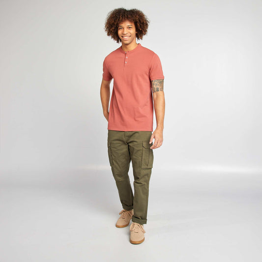 أضف إلى السلةقميص بولو بيكيه بياقة ماندارين باللون الأحمر